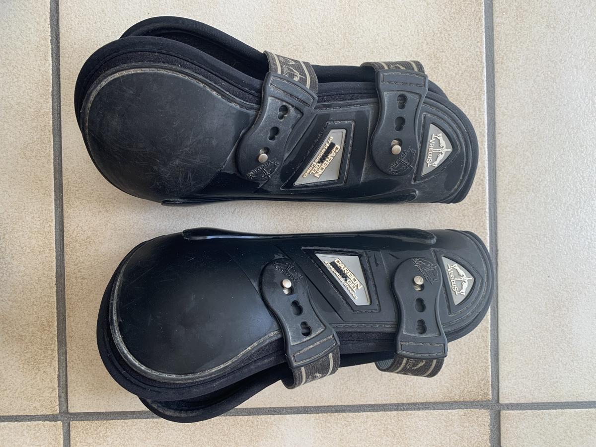 Ensemble de protections Veredus collection Marcus Ehning taille L. Très bon état car entretien régulier mais quelques traces d’usures du à l’activité. Idéal pour un grand cheval, protections de très grande qualité.
