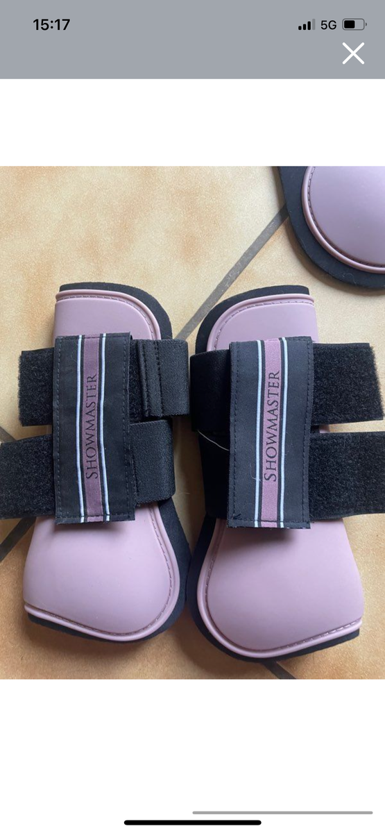 Ensemble rose pâle guêtres et protèges boulets taille cob, neuves ( erreur de taille) 25 euros