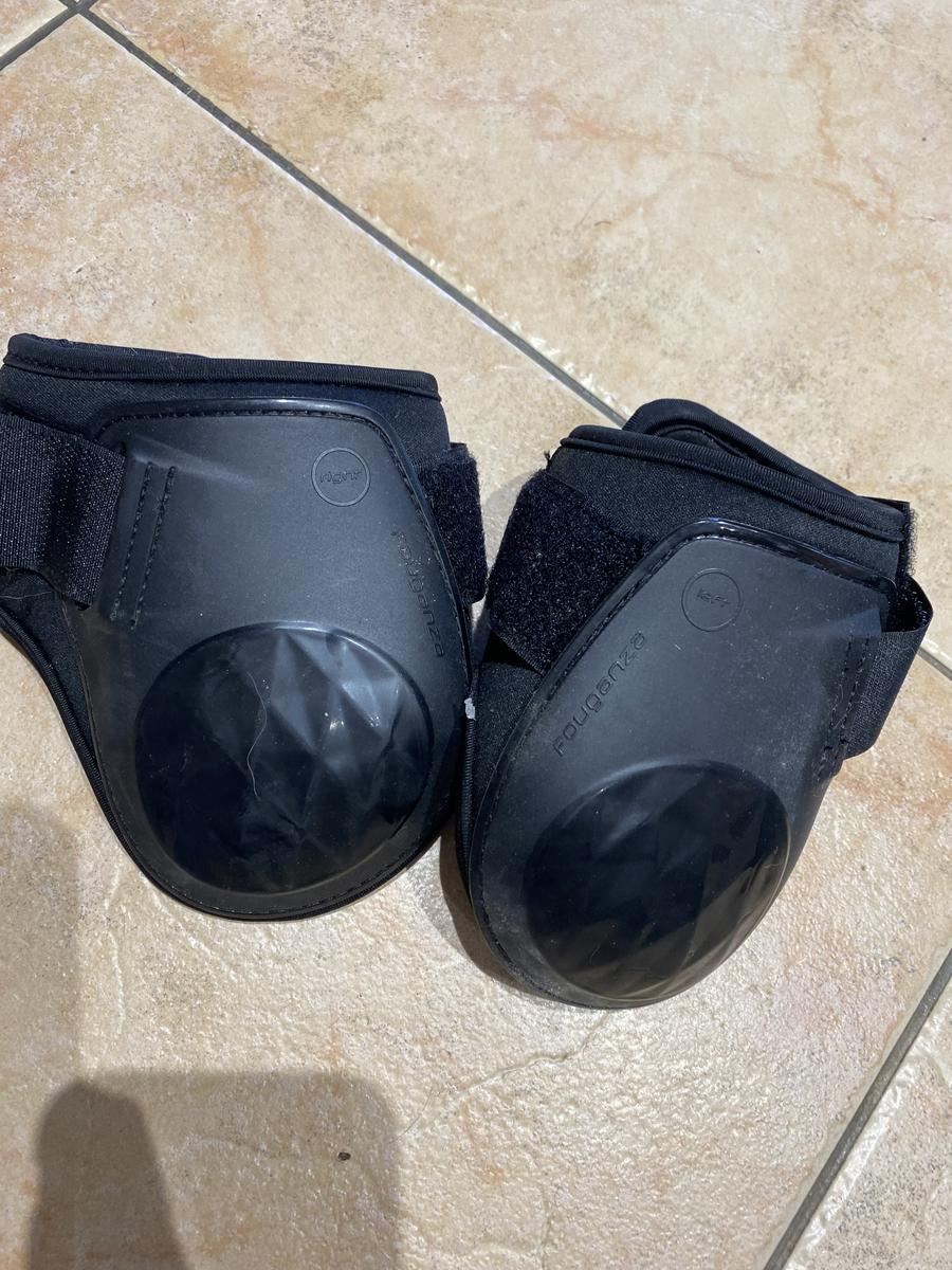Protections cheval (guêtres + protèges boulets) noirs Décathlon taille FS, jamais utilisé car erreur de taille.