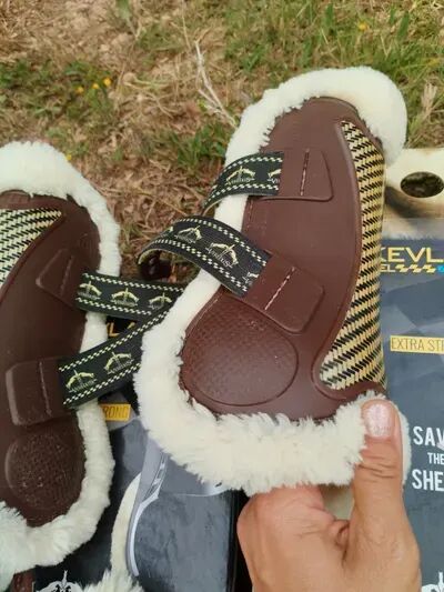 Lot de guêtres et protège boulets de la marque Veredus, marron, modèle kevlar gel vento, taille S. Portées 4 fois en concours. En parfait état.