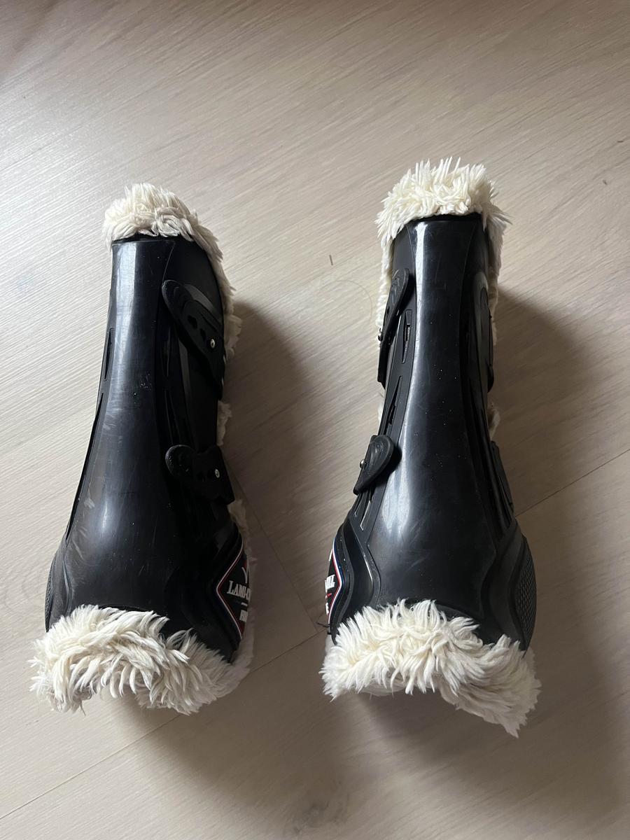 Les guêtres sont comme neuf elle présente quelques rayures à l’intérieur mais ne gêne en rien leur utilisation (voir photo) le mouton n’a pas bougé (on toujours été lavé en machine et les protège boulet son neuf ils ont été utilisé que une fois à vendre 50€ le prix d’achat pour l’ensemble est de 120€