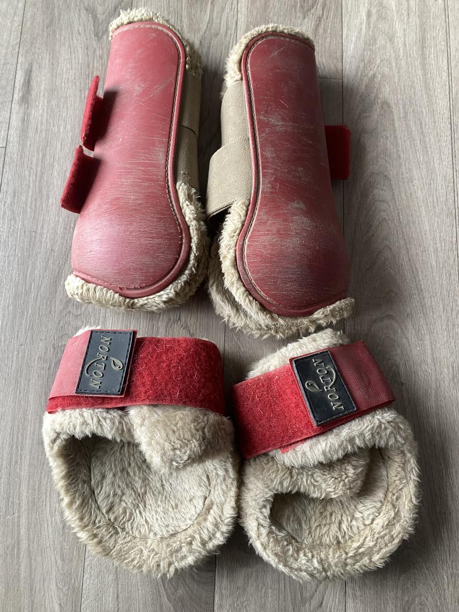 Ensemble guêtres + protèges boulets rouges. Taille cheval.