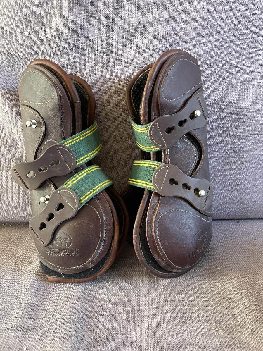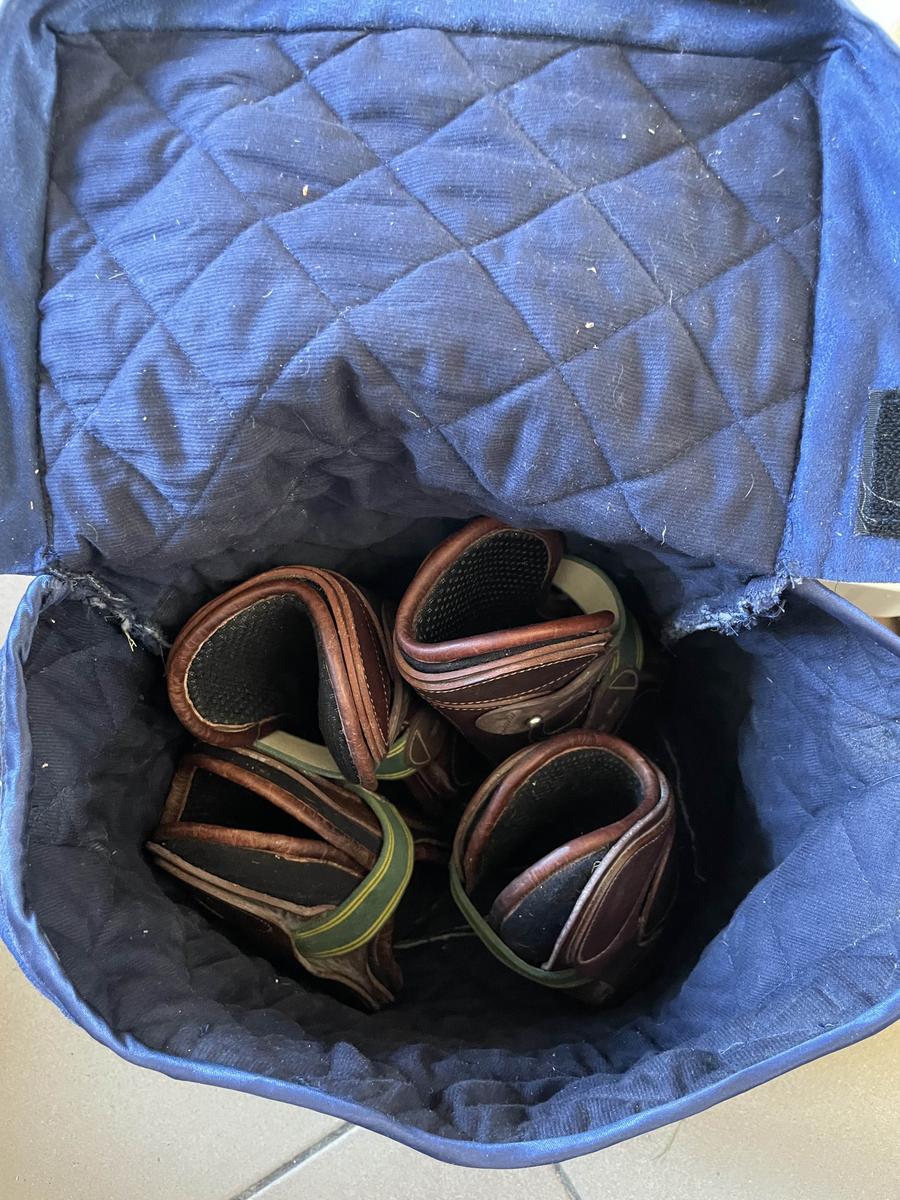 porté quelques fois, toujours savonné et graissé après chaque utilisation, taille cheval. élastiques en super état. déhoussable et lavable en machine, l intérieur, est aussi à mémoire de forme. vendu avec sac de rangement