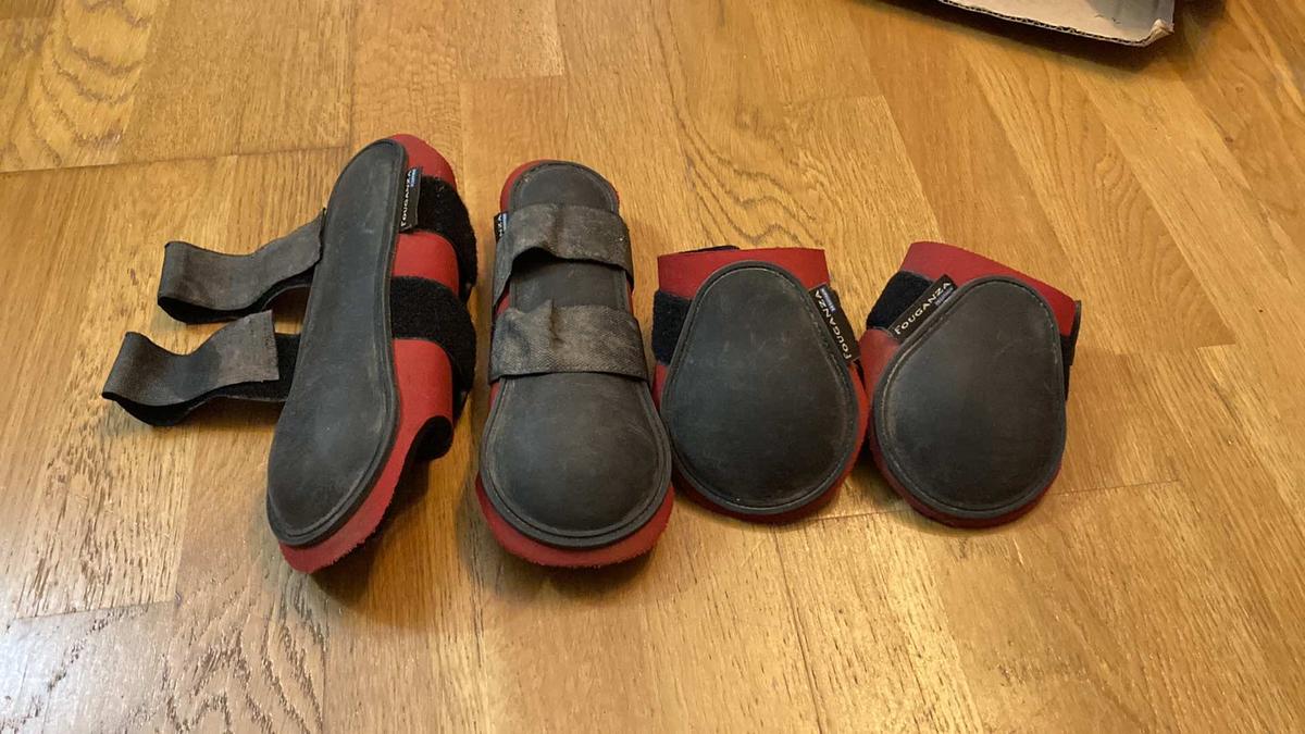 Protège boulets Décathlon rouge en très bon état taille cheval.