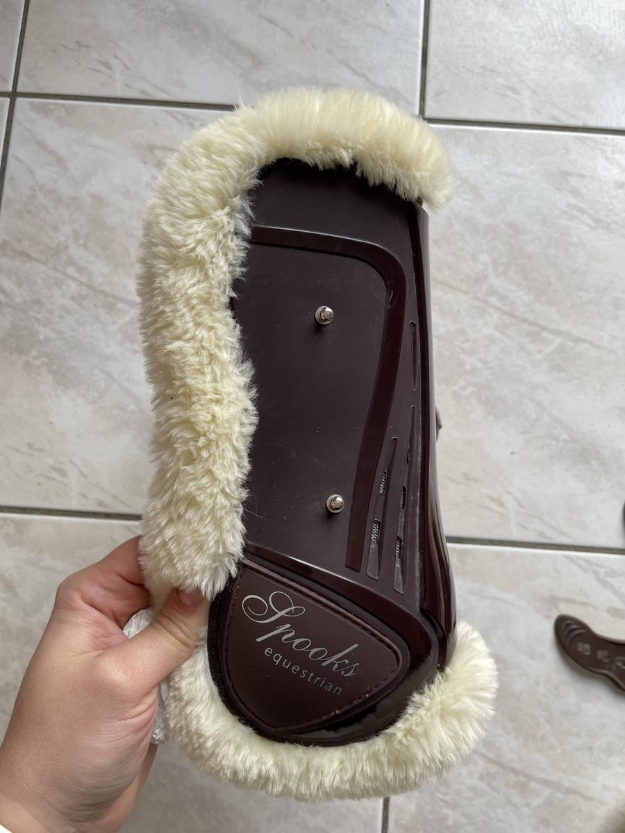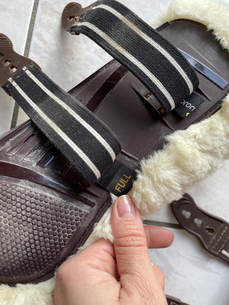 Ensemble guetre et protèges boulets marron à mouton beige taille cheval.