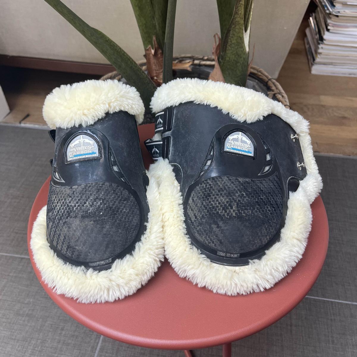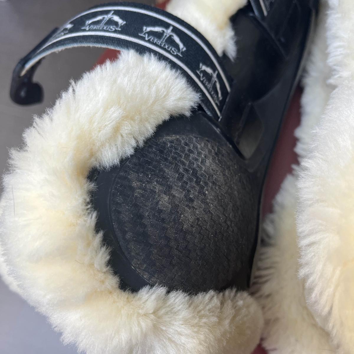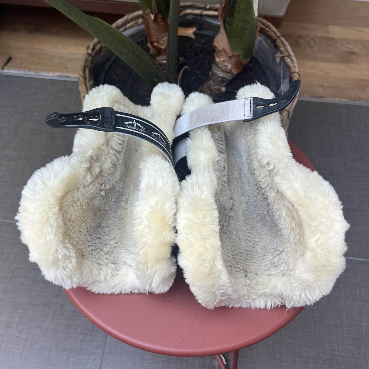 LOT guêtres et protèges-boulets. Modèle : CARBONE GEL VENTO SAVE THE SHEEP. Marque VEREDUS. Coques noires et intérieur mouton. Taille M. Très bon état général, pas de défauts sur les parties en mouton. Quelques traces de frottements (usure classique) sur les coques. Prix NEUF du lot : 395,80€ (215,90€ pour les guêtres et 179,90€ pour les protèges boulets).
