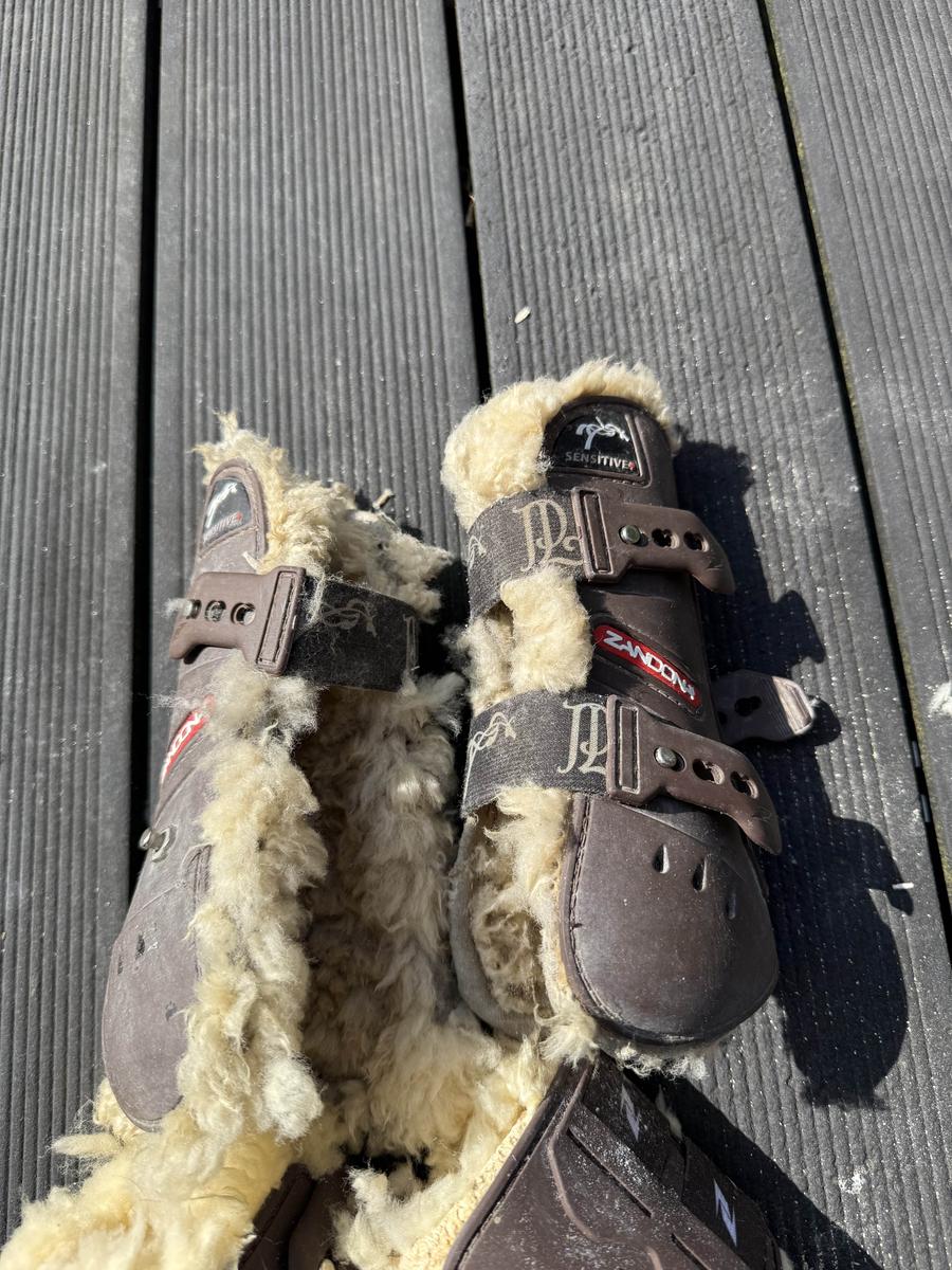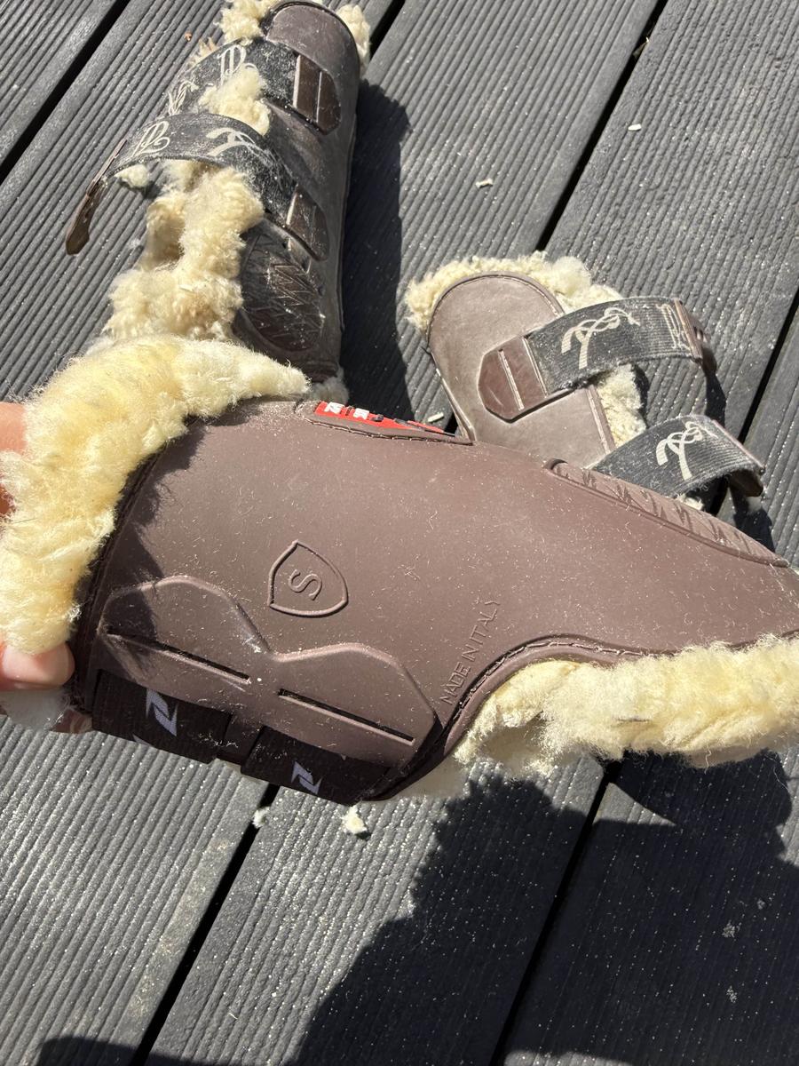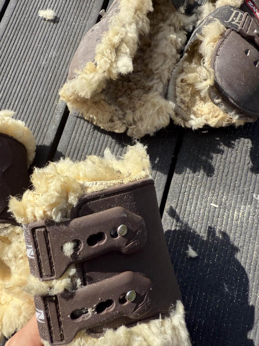Ensemble guêtres + protège-boulets équitation – Cheval/Poney – Zandona x Pénélope Leprevost – Taille S Ensemble composé de guêtres et protège-boulets couleur marron, avec intérieur en mouton crème (blanc cassé). Taille S – Convient parfaitement pour un poney D ou un petit cheval. ⚠️ État : • L’extérieur est en très bon état. • L’intérieur (moumoute) est très abîmé : il serait préférable de retirer la doublure actuelle et de remplacer les intérieurs. • Les protège-boulets sont moins abîmés et restent dans un état satisfaisant. 📝 Marque : Zandona x Pénélope Leprevost Valeur. Neuf : 300€ Elles sont vendues en l’état, non nettoyées avant l’envoi. Merci d’en tenir compte avant l’achat.