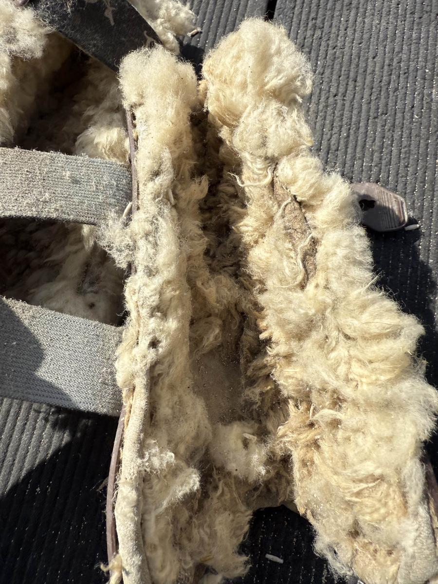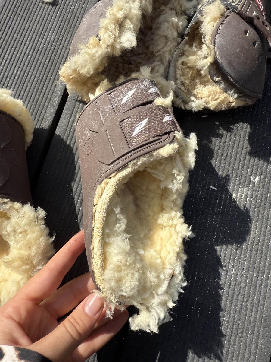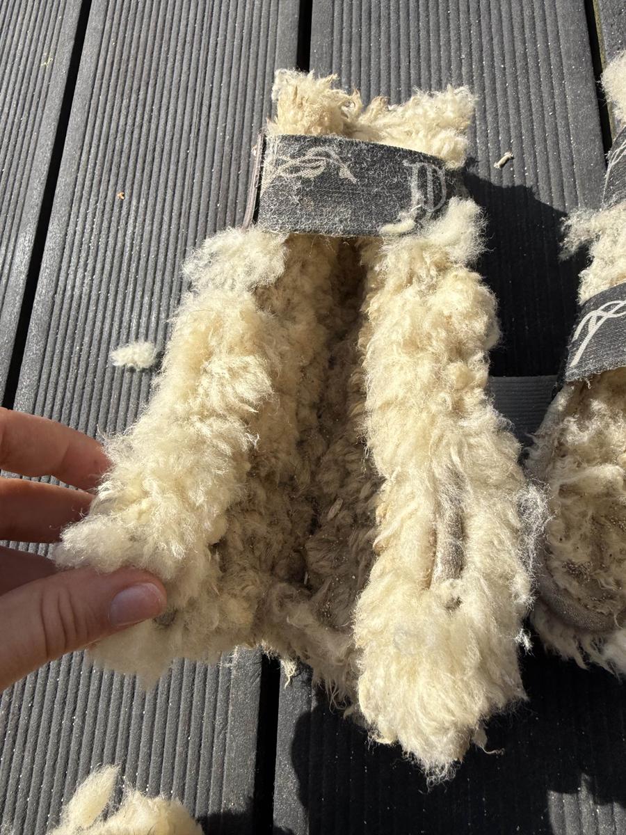Ensemble guêtres + protège-boulets équitation – Cheval/Poney – Zandona x Pénélope Leprevost – Taille S Ensemble composé de guêtres et protège-boulets couleur marron, avec intérieur en mouton crème (blanc cassé). Taille S – Convient parfaitement pour un poney D ou un petit cheval. ⚠️ État : • L’extérieur est en très bon état. • L’intérieur (moumoute) est très abîmé : il serait préférable de retirer la doublure actuelle et de remplacer les intérieurs. • Les protège-boulets sont moins abîmés et restent dans un état satisfaisant. 📝 Marque : Zandona x Pénélope Leprevost Valeur. Neuf : 300€ Elles sont vendues en l’état, non nettoyées avant l’envoi. Merci d’en tenir compte avant l’achat.