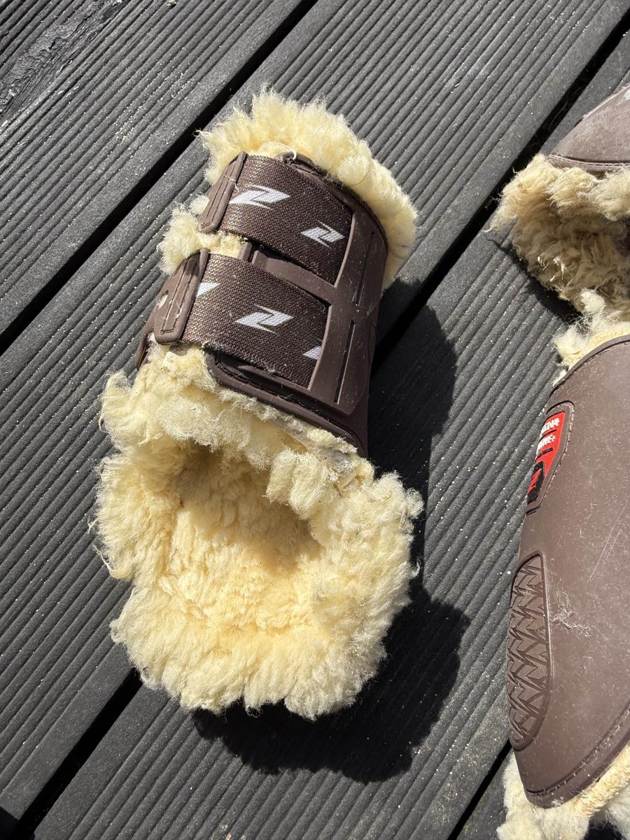 Ensemble guêtres + protège-boulets équitation – Cheval/Poney – Zandona x Pénélope Leprevost – Taille S Ensemble composé de guêtres et protège-boulets couleur marron, avec intérieur en mouton crème (blanc cassé). Taille S – Convient parfaitement pour un poney D ou un petit cheval. ⚠️ État : • L’extérieur est en très bon état. • L’intérieur (moumoute) est très abîmé : il serait préférable de retirer la doublure actuelle et de remplacer les intérieurs. • Les protège-boulets sont moins...