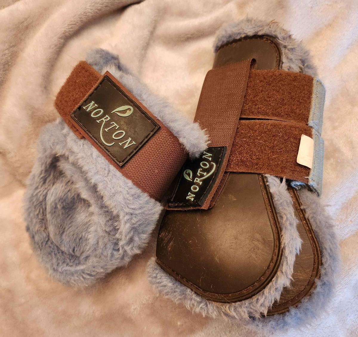 Guêtres et Protèges boulets moumoute Norton, marrons et bleu ciel