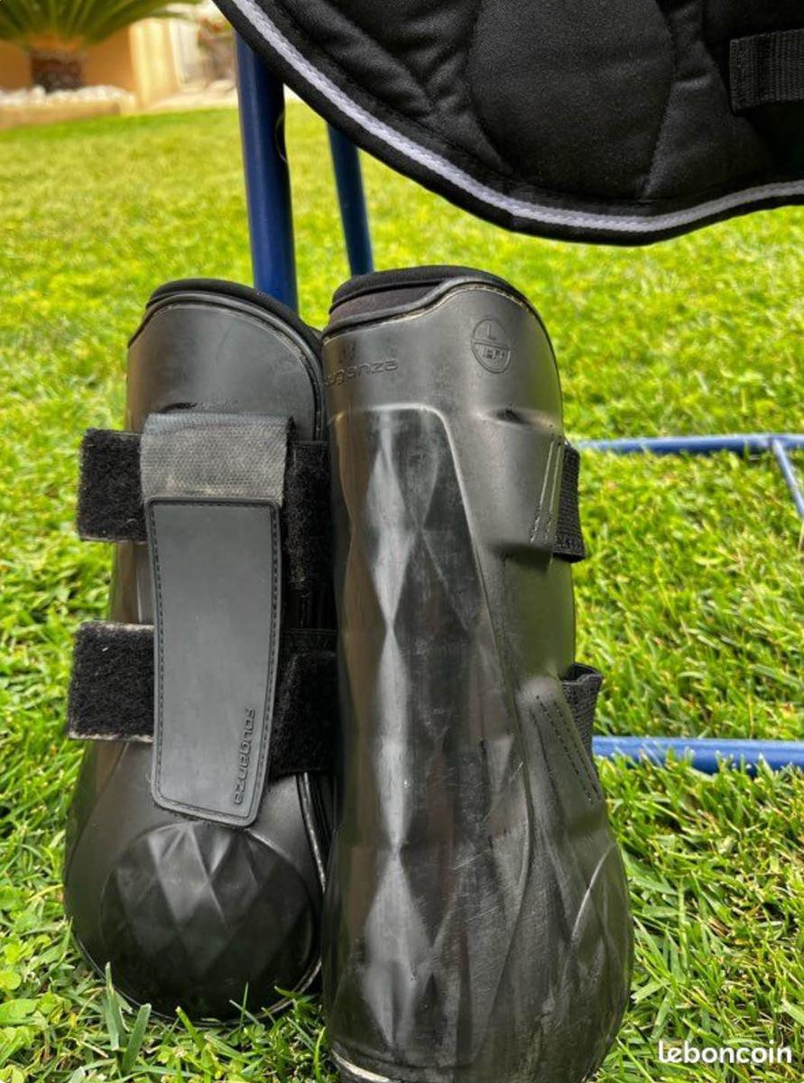 tapis porté quelques fois (laver), guêtres utilisées mais remises à neuf, longe gagner en concours neuve, protéges boulets jamais portés