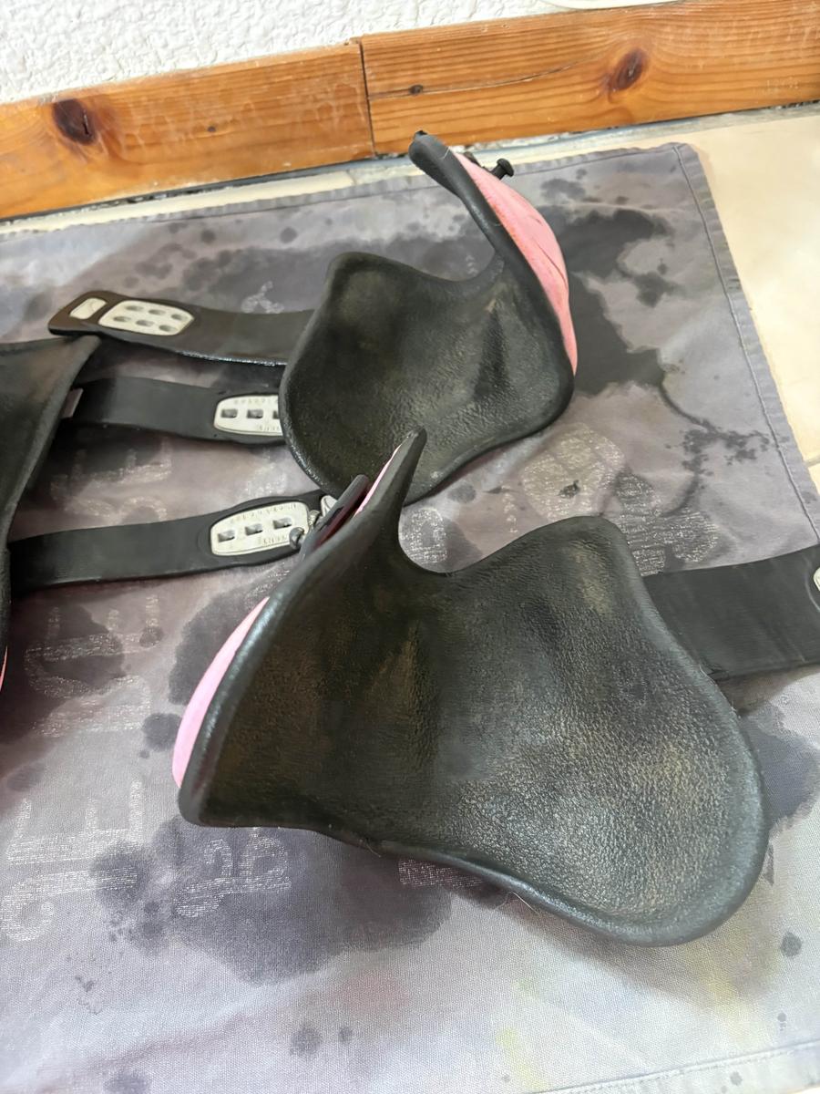 Superbe ensemble HEXA composé de guêtres avant + protège-boulets arrière, coloris rose clair, idéal pour le travail quotidien ou les séances d’obstacle 🌸