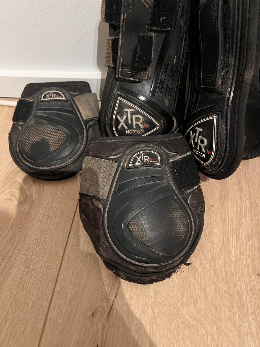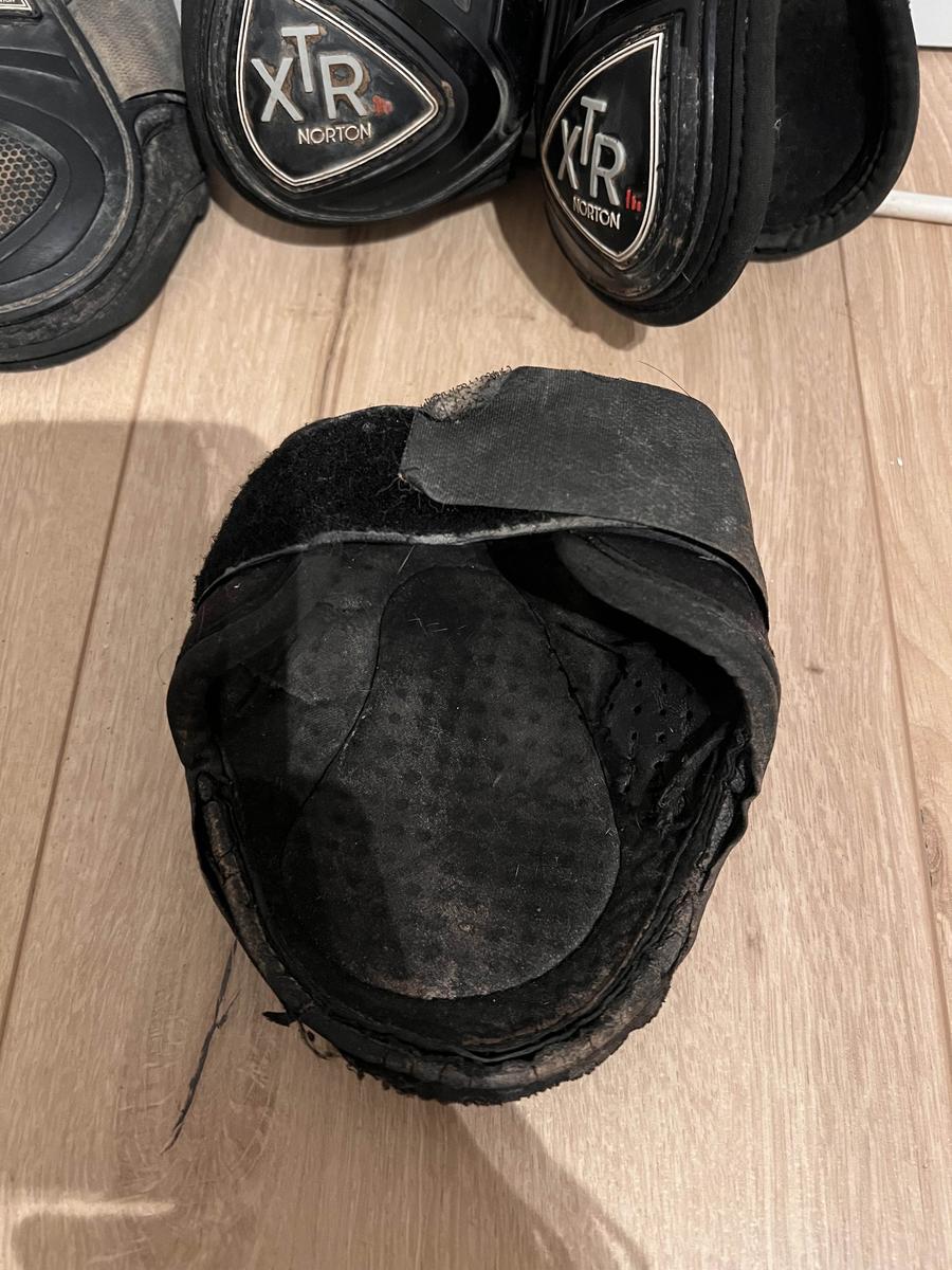 les protections ont bien été utilisées mais peuvent encore l’être sans soucis, elles ne sont pas lavées sur les photos. Les défauts peuvent être vu sur les photos.