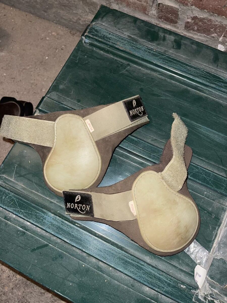 Ensemble guêtres et protèges-boulets poney vert amande et marron Norton