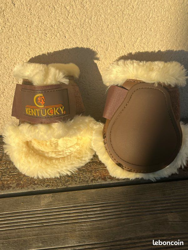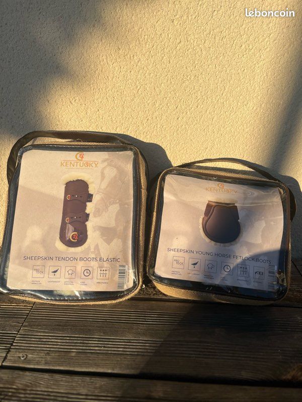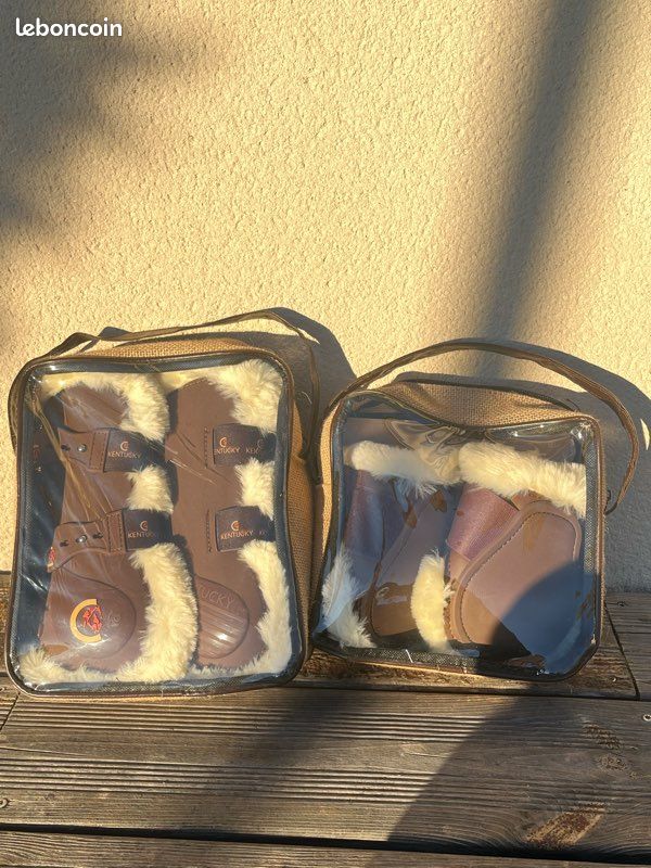 Je vends un emsemble guetres + proteges boulets taille cheval. Les protèges boulets sont adaptés aux jeunes chevaux.