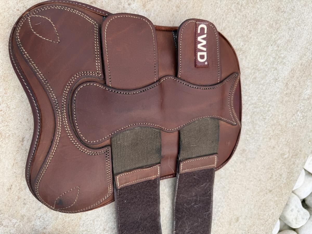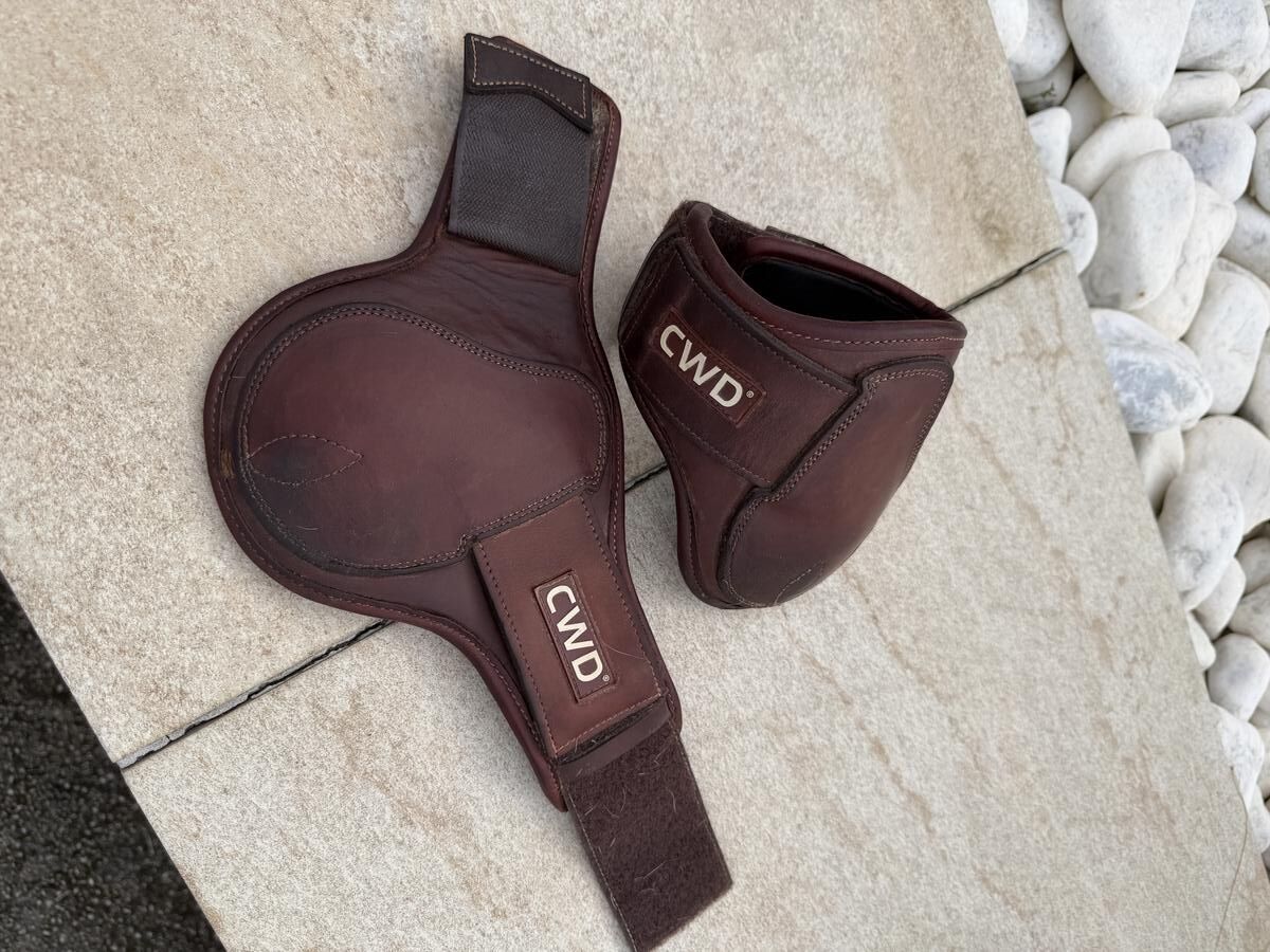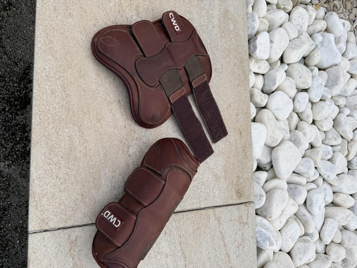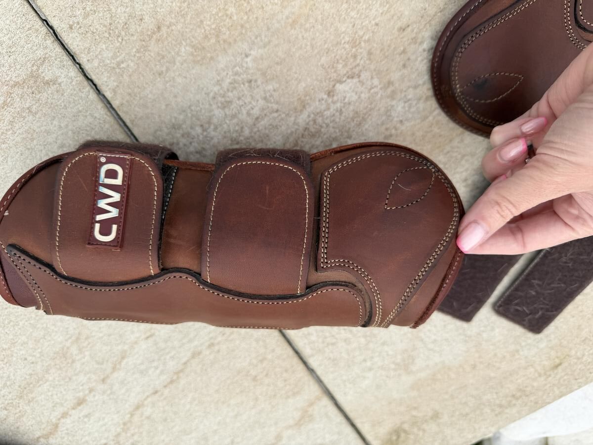 Guêtres - protège tendons Velcro veau marron avec surpiqûres blanches - taille 3