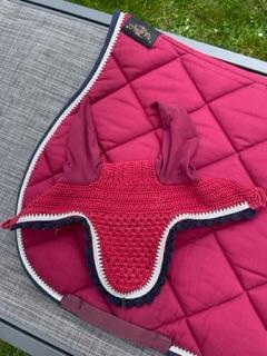 Ensemble Ju&Pa taille cheval bordeaux liseré bleu marine avec cordelette argenté
