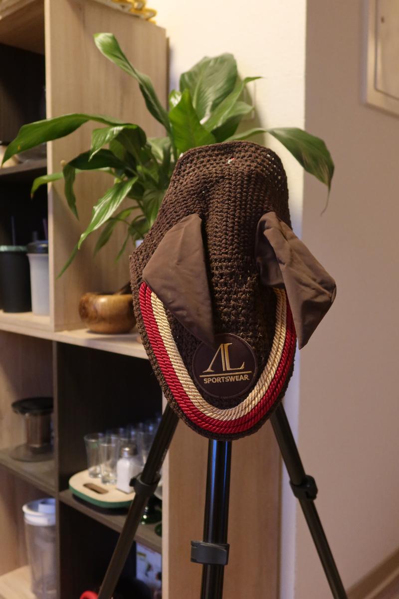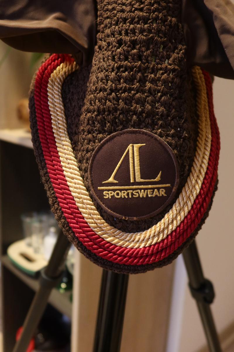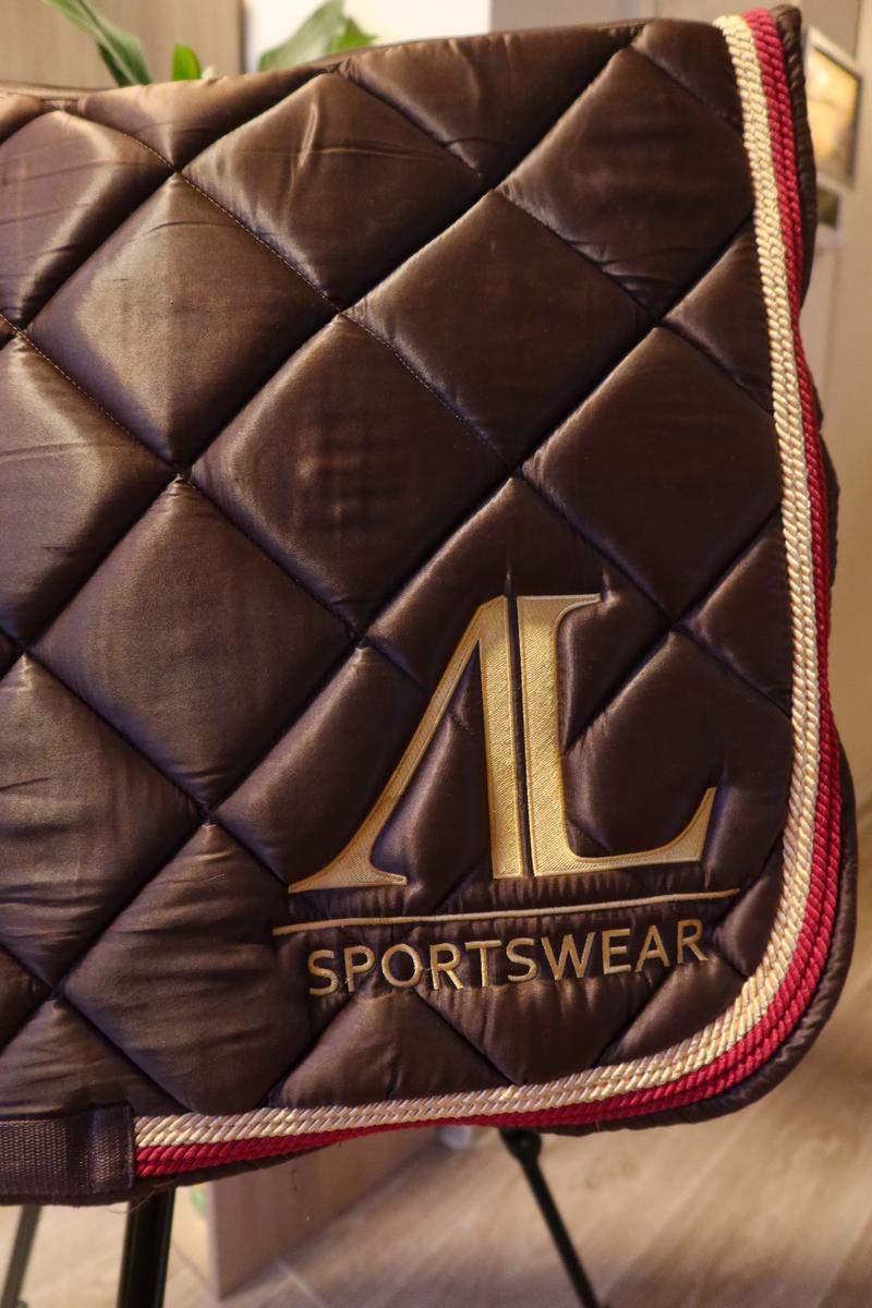 Ensemble Alexandra Ledermann Marron avec des cordes or/bordeaux.