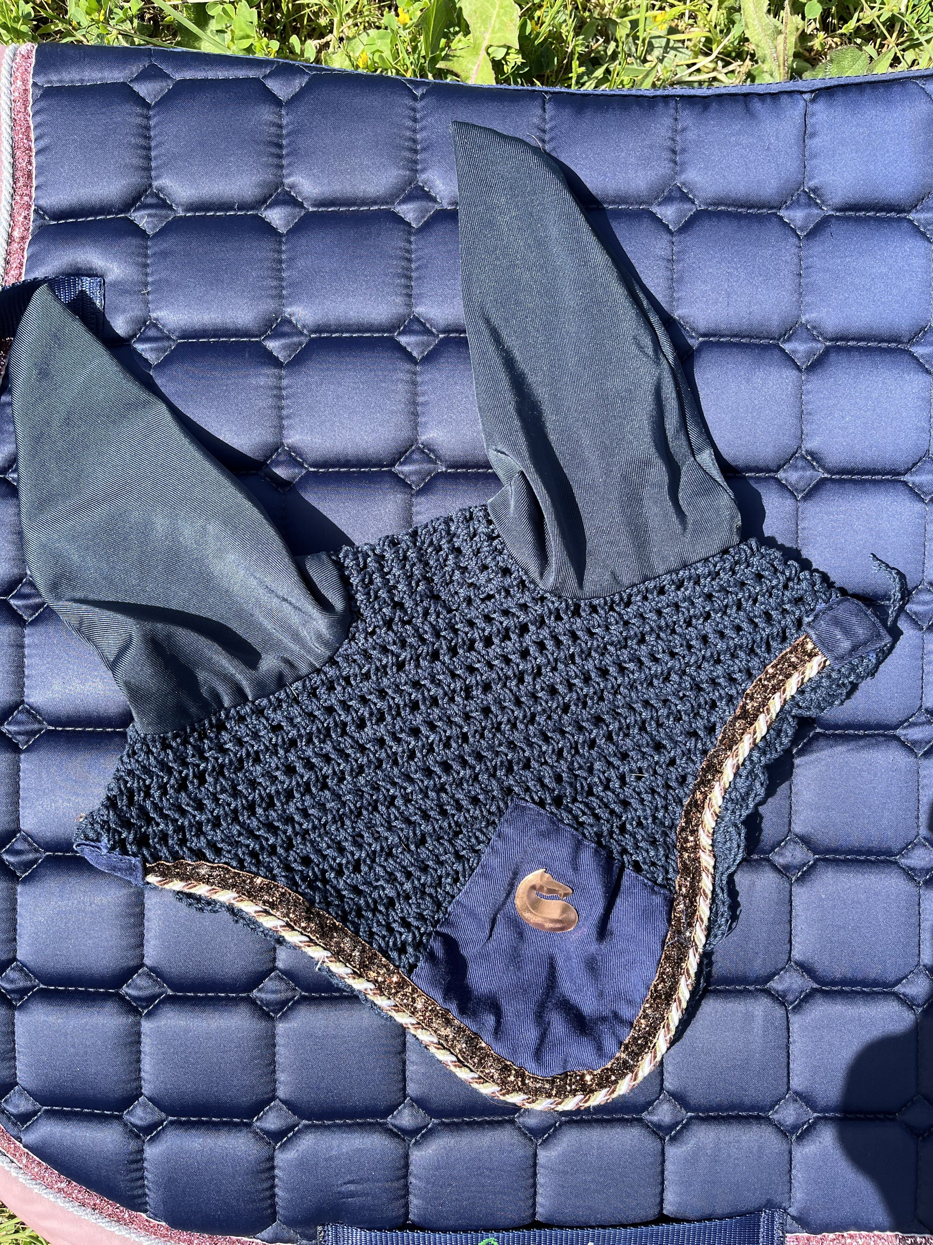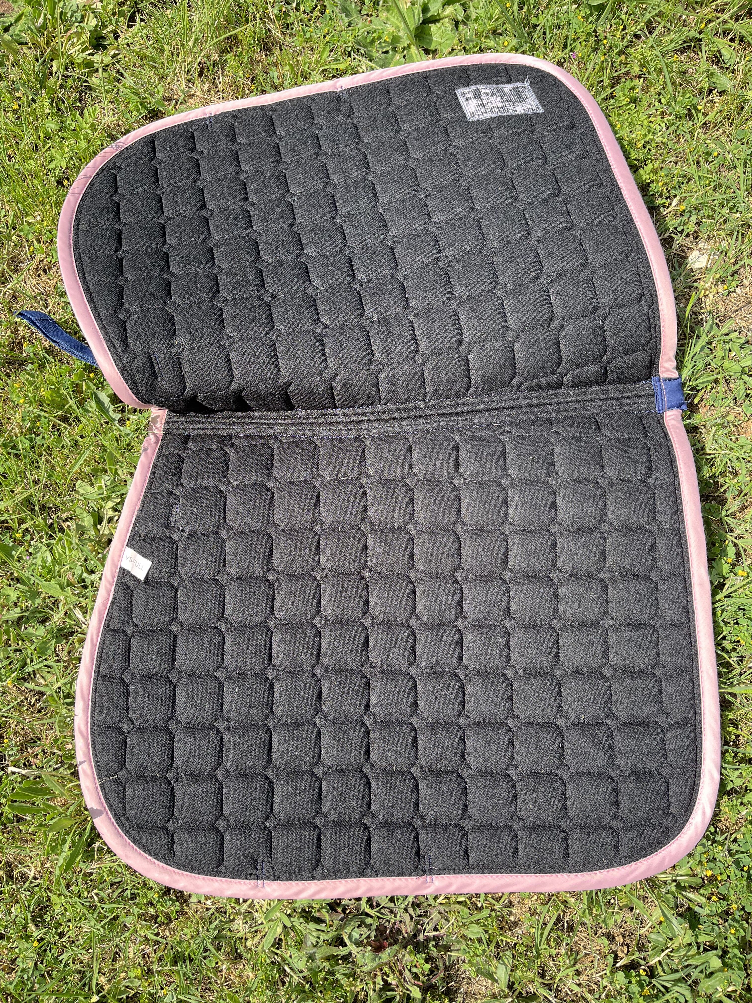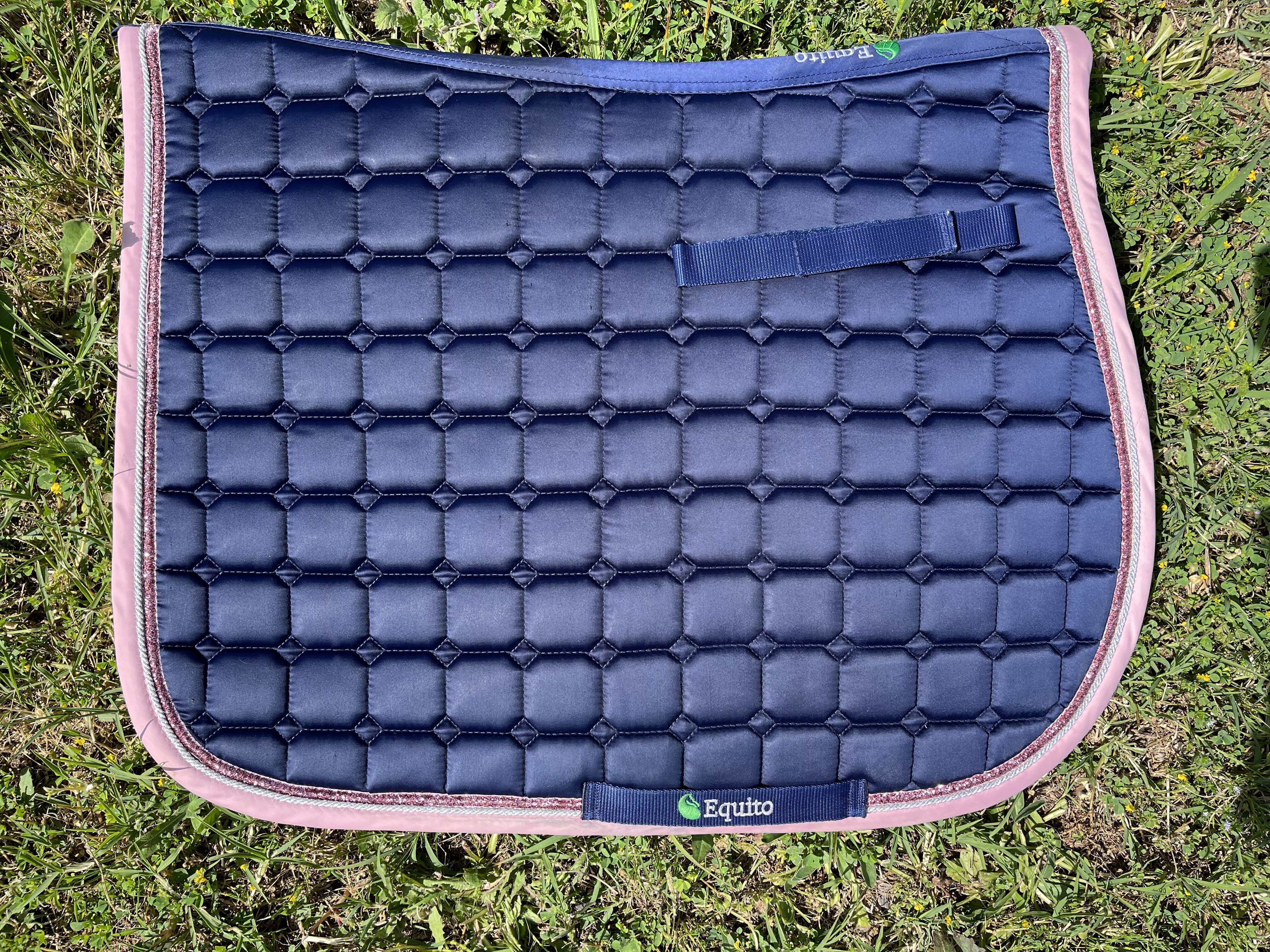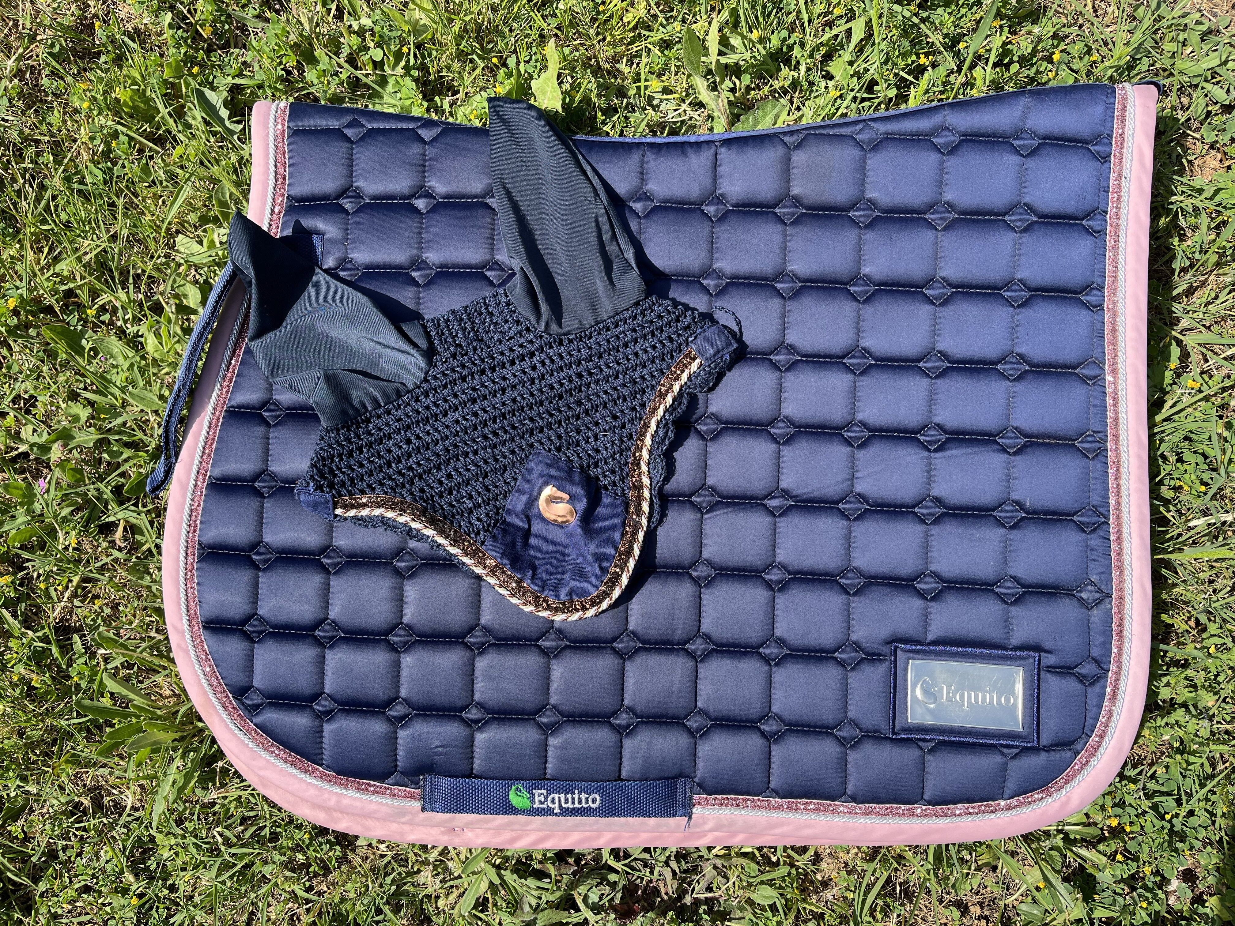 Bonjour, je vends mon ensemble tapis et bonnet court bleu marine et rose pâle de chez Equito.