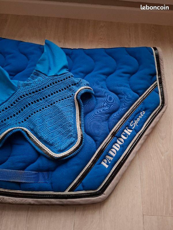 Tapis paddock sport - Bleu roi avec liseret argenté/noir + bonnet taille FULL