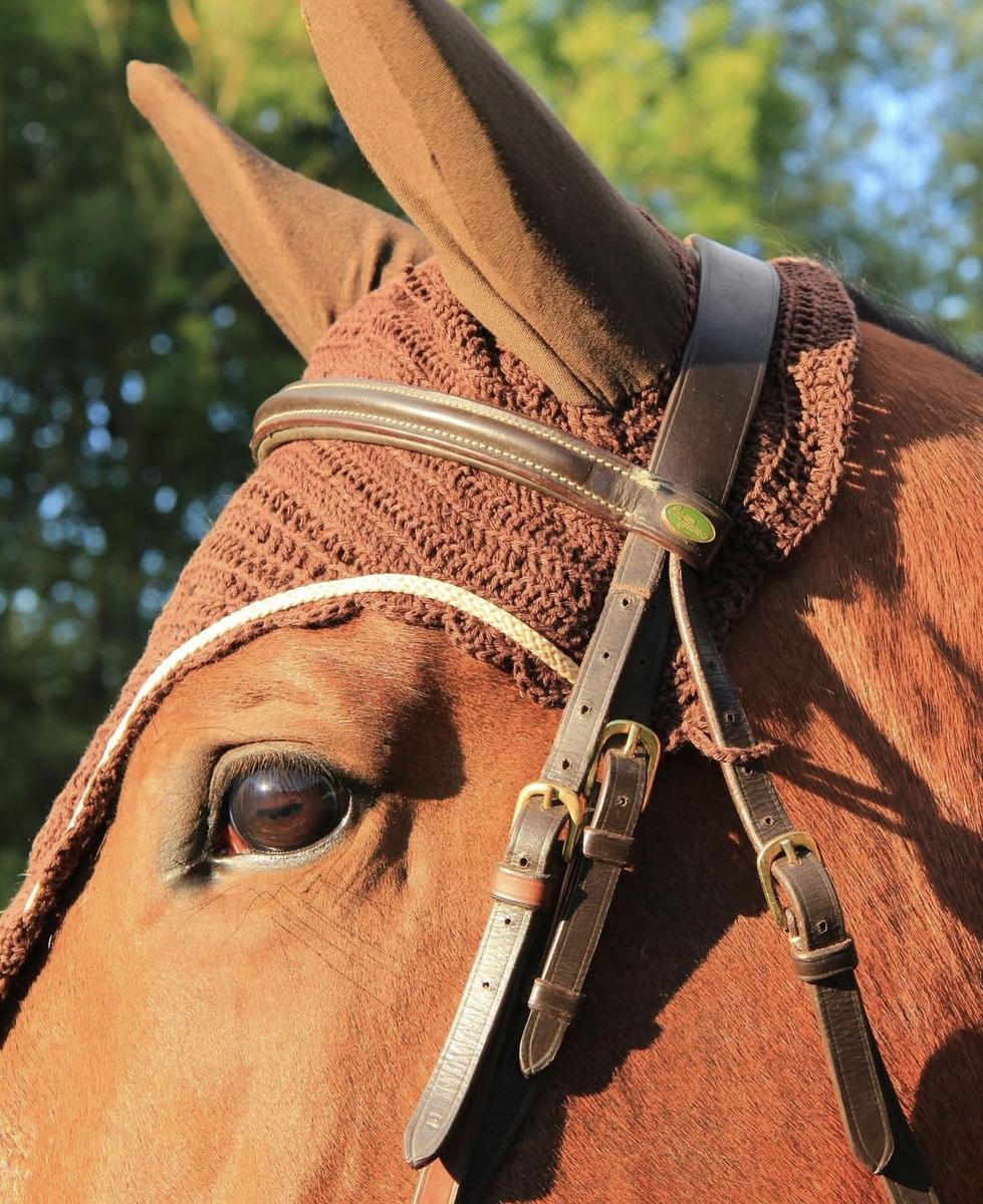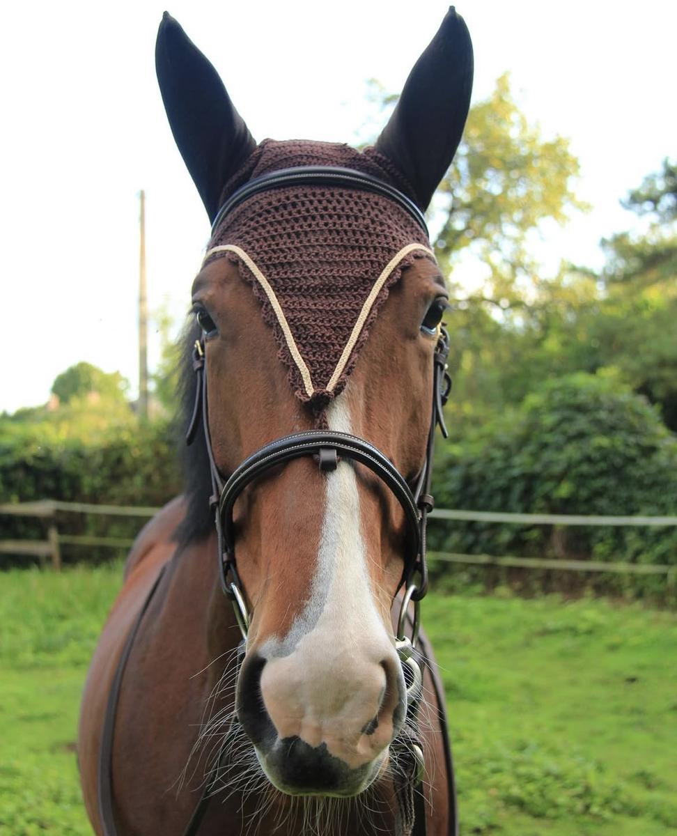 Ensemble cheval tapis Veredus marron et bonnet long fait main (@mh_.creation)