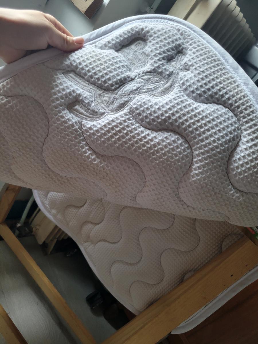 Très bon état le tapis à était lave ps de défaut, de déchirures. Le bonnet est neuf jamais utilisé.