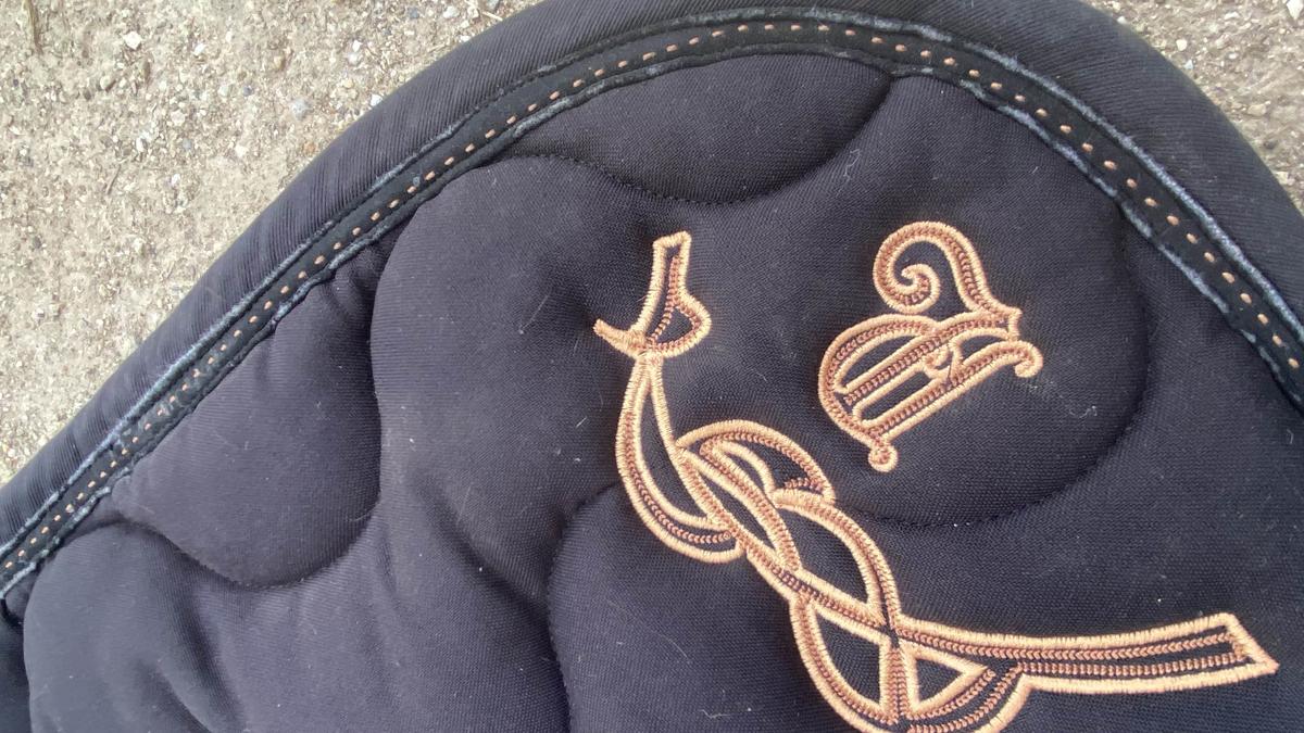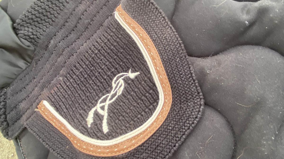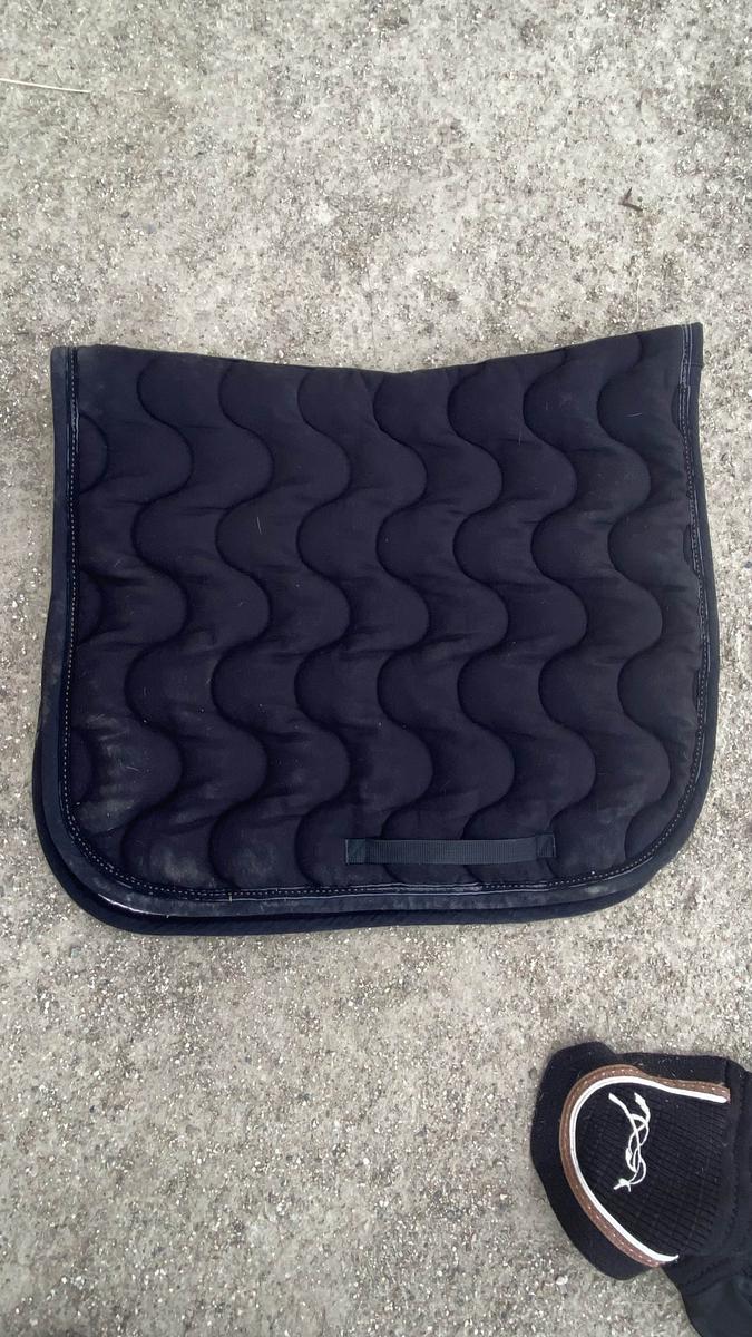 Ensemble pénélope noir et marron, le tapis à un peu une forme dressage mais ne se voit pas sous la selle Porté quelque fois, en très bon état (sale sur la photo)