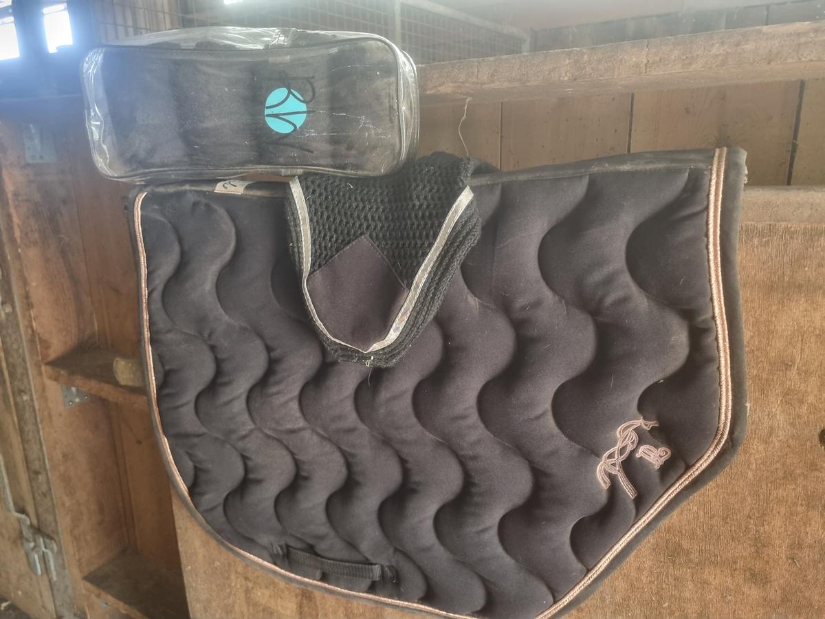 Ensemble noir composé d'un tapis Penelope coupé sport ainsi que d'un bonnet et de bandes de polo sans marque. Ensemble non dissociable au prix de 90 euros. Remise en main propre à smarves (86) ou par envoi.
