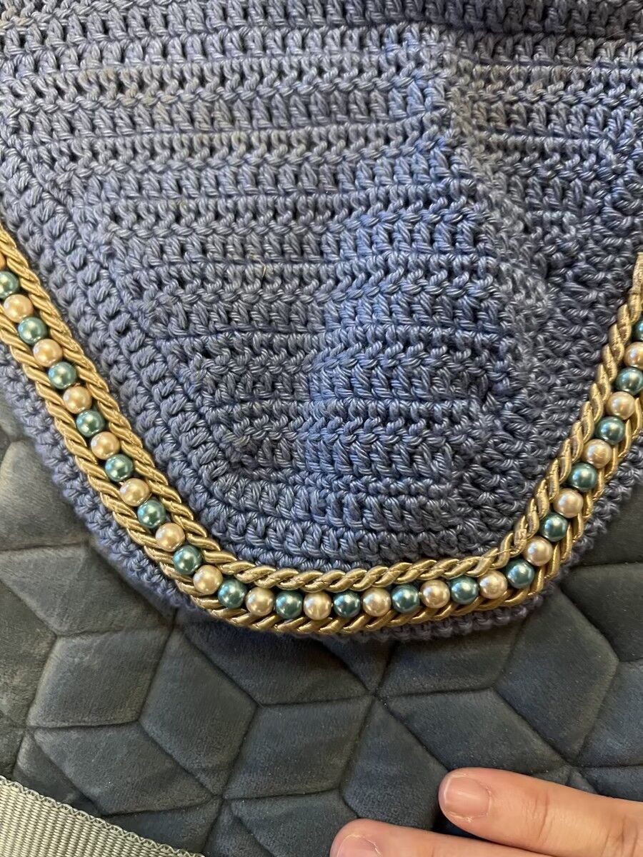 ensemble kentucky velvet bleu ciel, tapis Kentucky et bonnet fait par une créatrice indépendante.