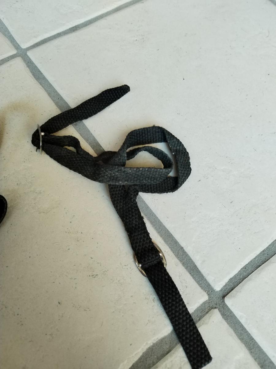 Lanières : cuir noir (monté) et synthétiques (origine)
