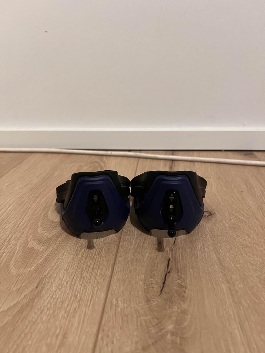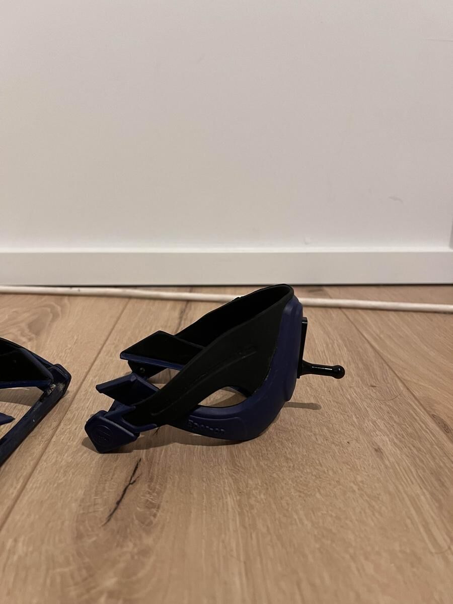 🏇Très bon état, il est possible de changer l’embout et de changer la hauteur. Pas besoin de lanière pour les attacher ils se maintiennent tout seul.