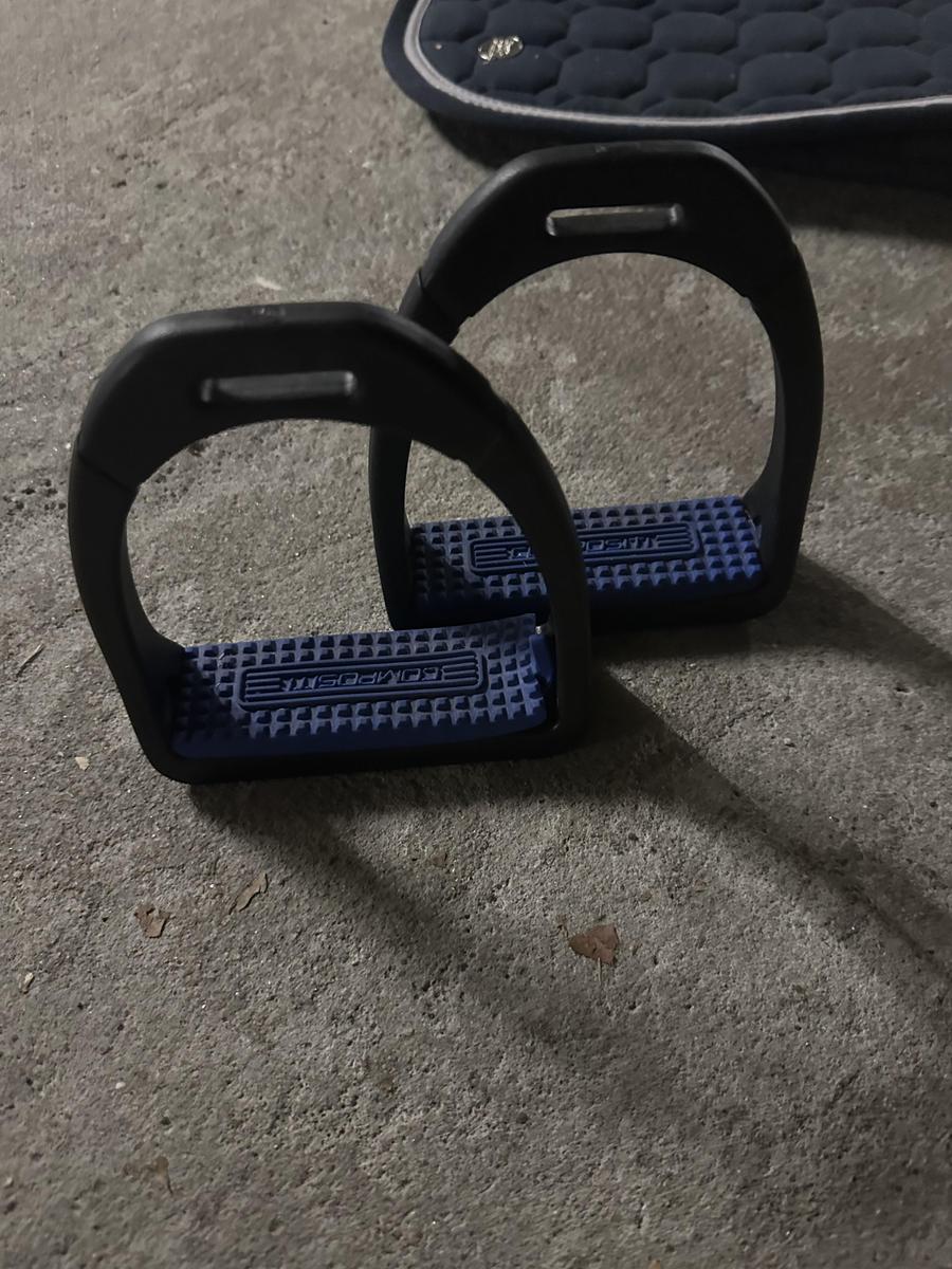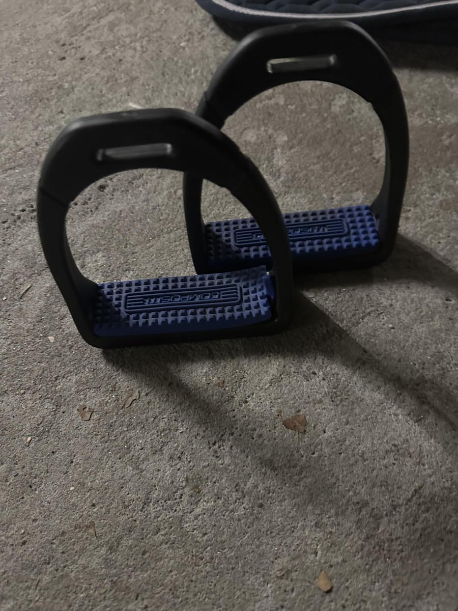 Etrier Premium Compositi couleur noir semelle bleu roi.