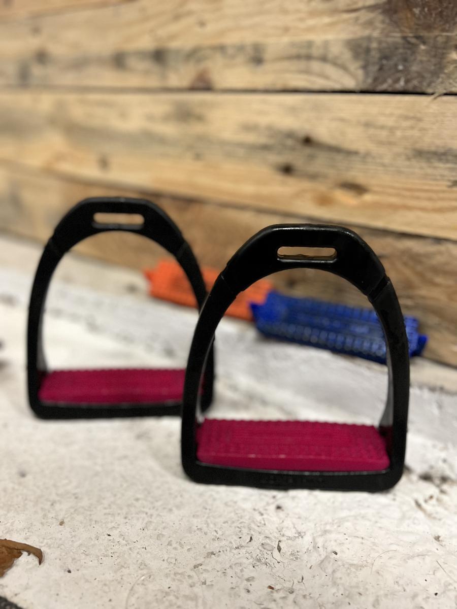Étriers avec planchers de différentes couleurs soit bleu soit rose soit orange. Nettoyé avant envoi bien sûr