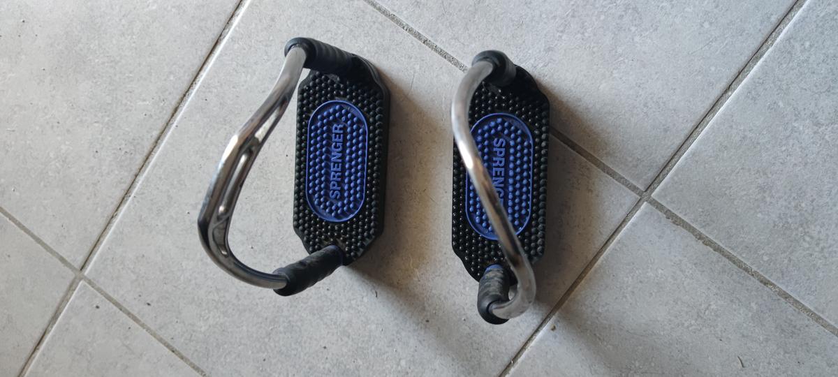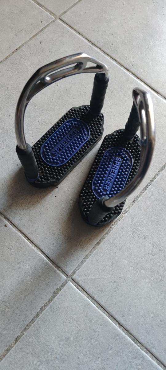 Étriers en acier inoxydable de forme incurvée pour une position parfaite du pied.