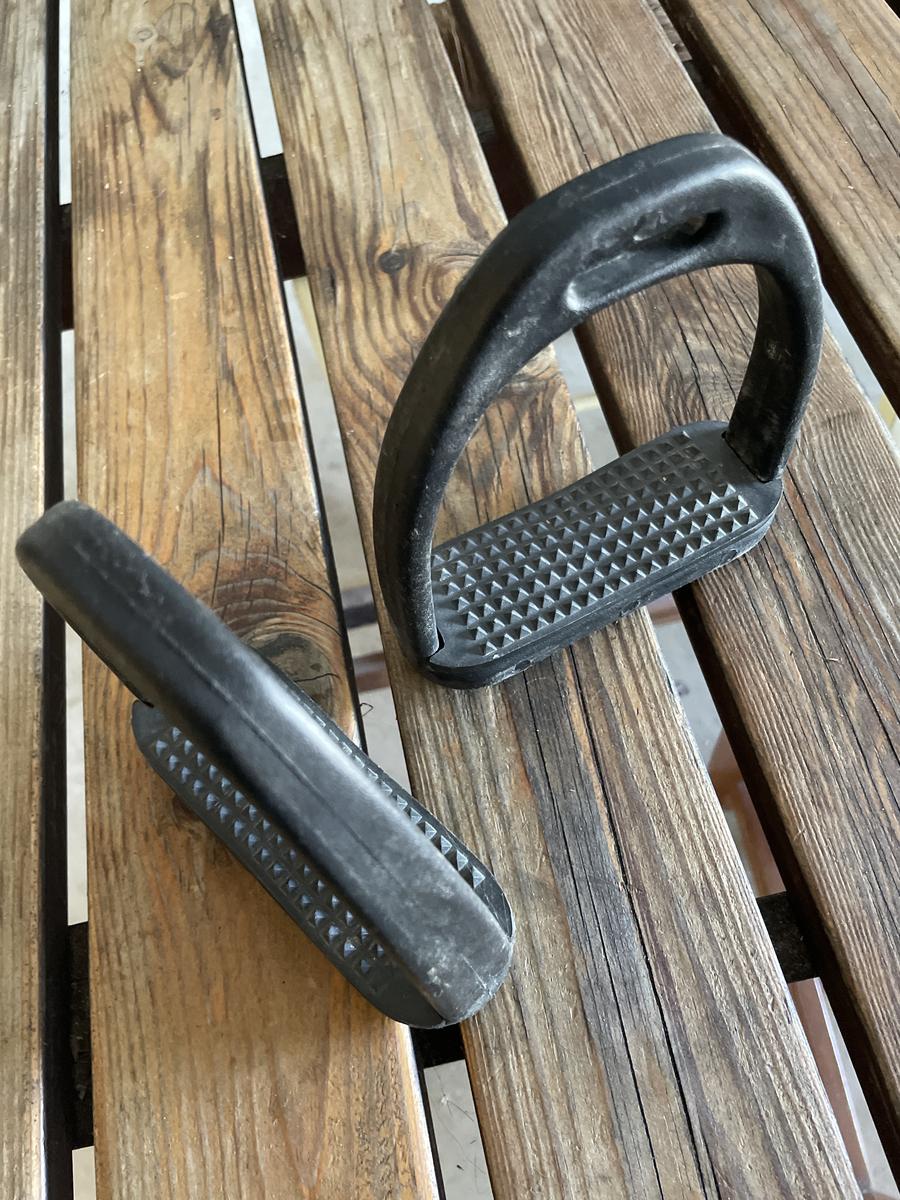 Étrier noir en plastique. Plancher plat avec des grippes. (Lavé avant envoie)