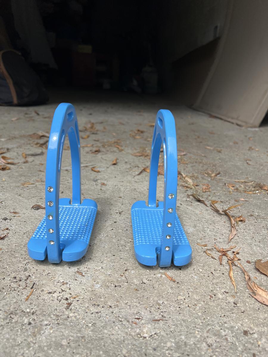 Étriers bleu avec strass sur le côté en excellent état, jamais porté !