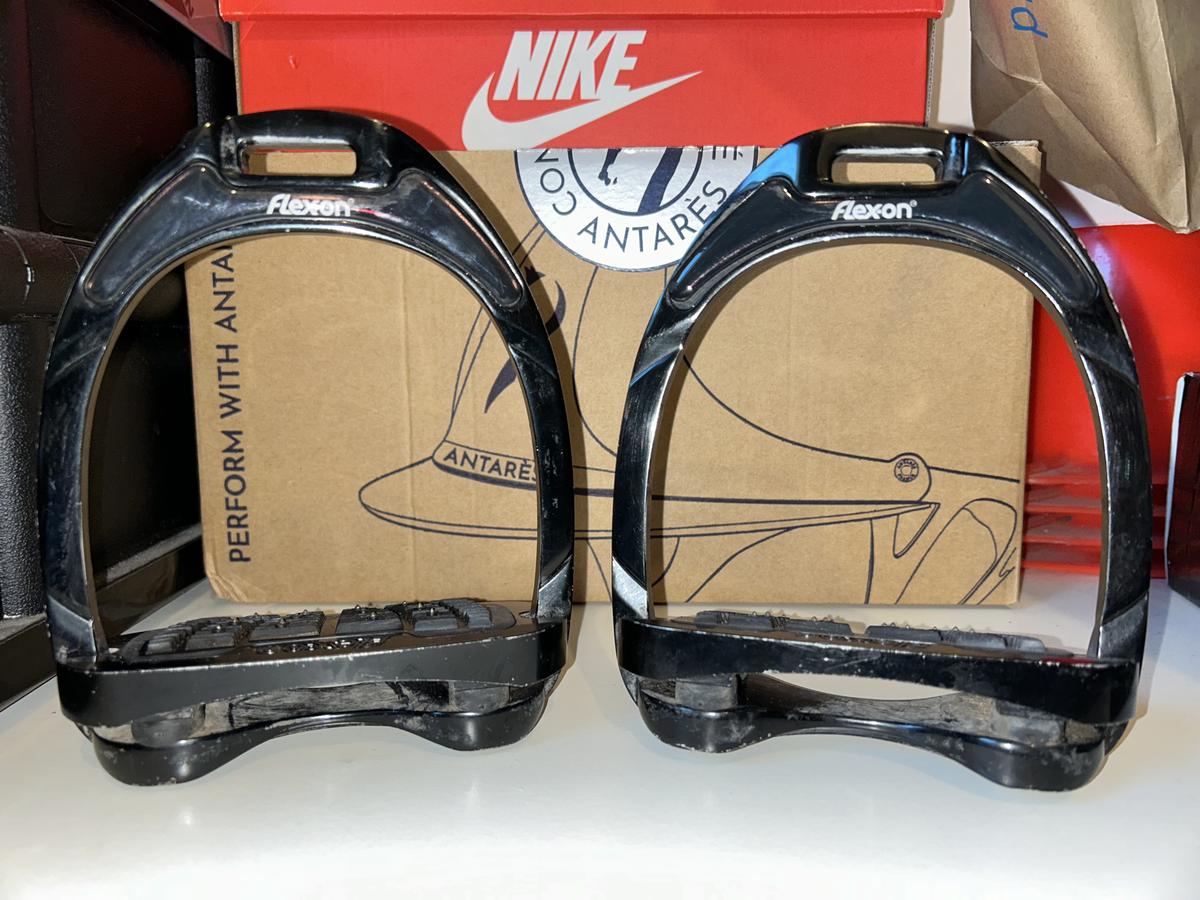 Flex on aluminium noirs très bon état, avec 3 stickers noirs de rechange. Dans la boîte d’origine.