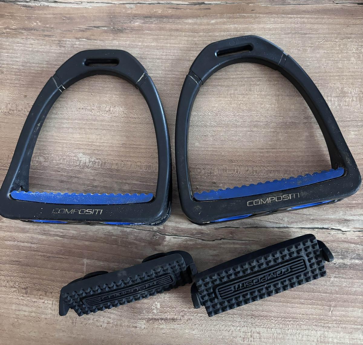 paire d étriers Compositi fourni avec semelle bleues et noires