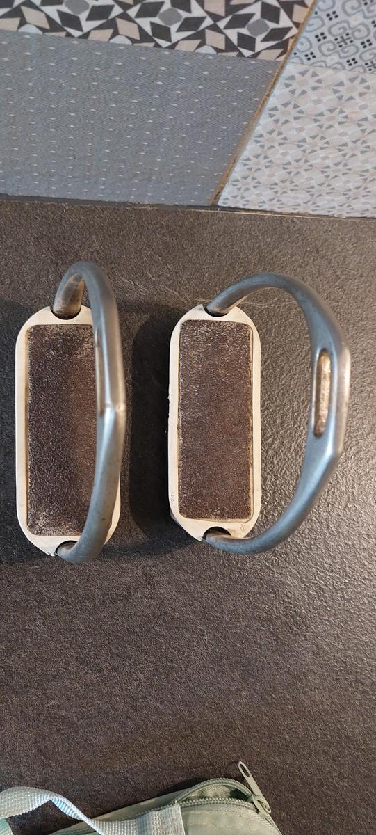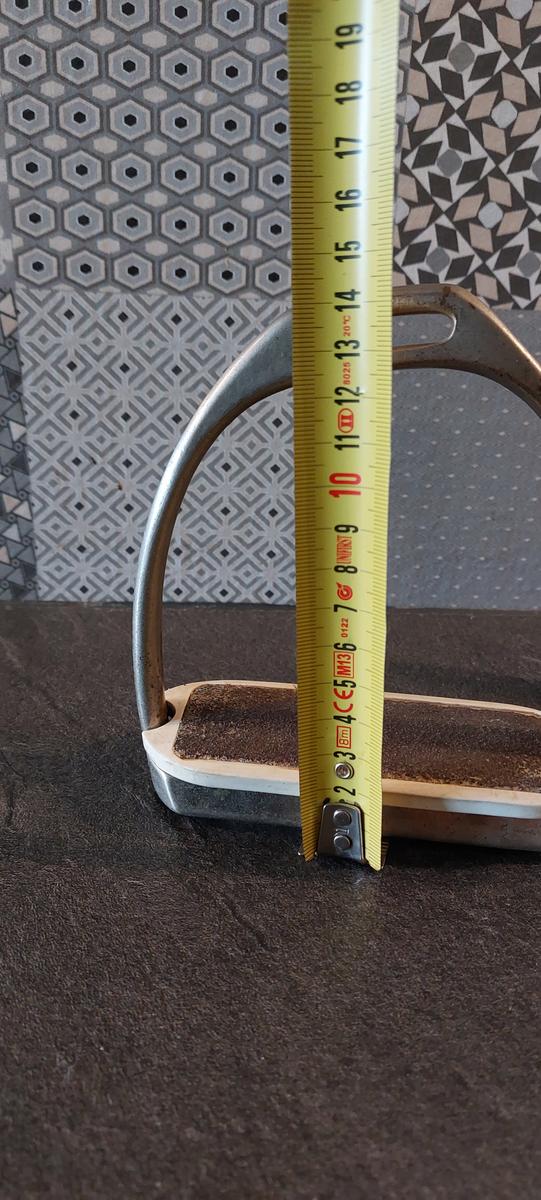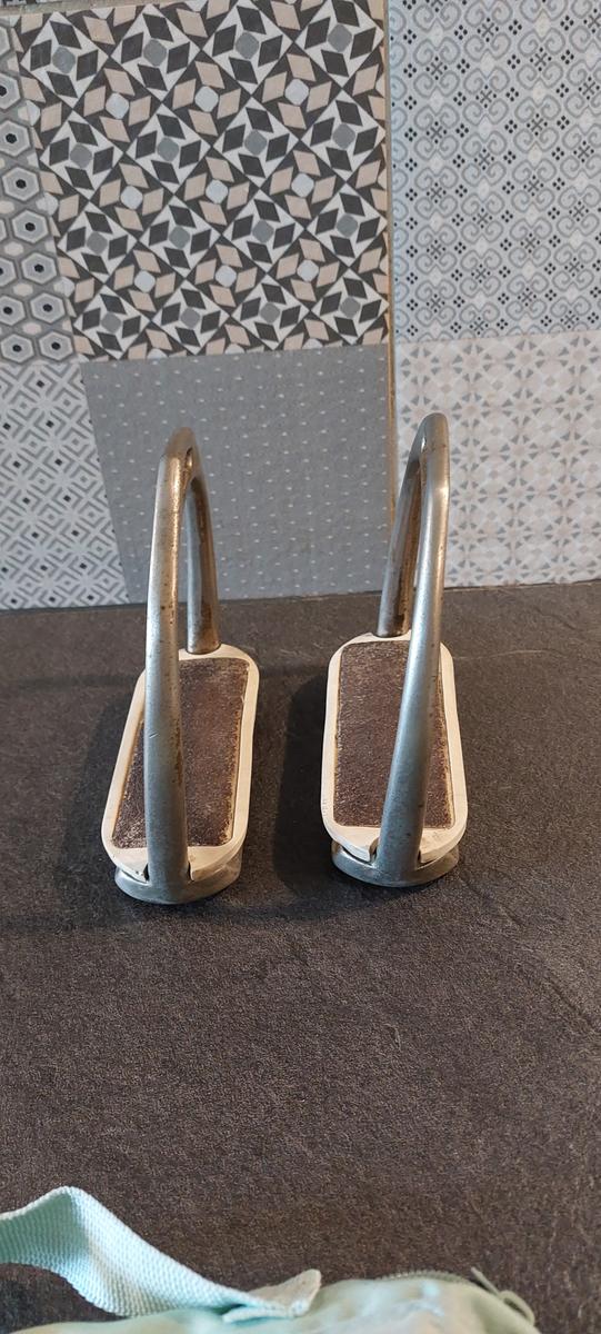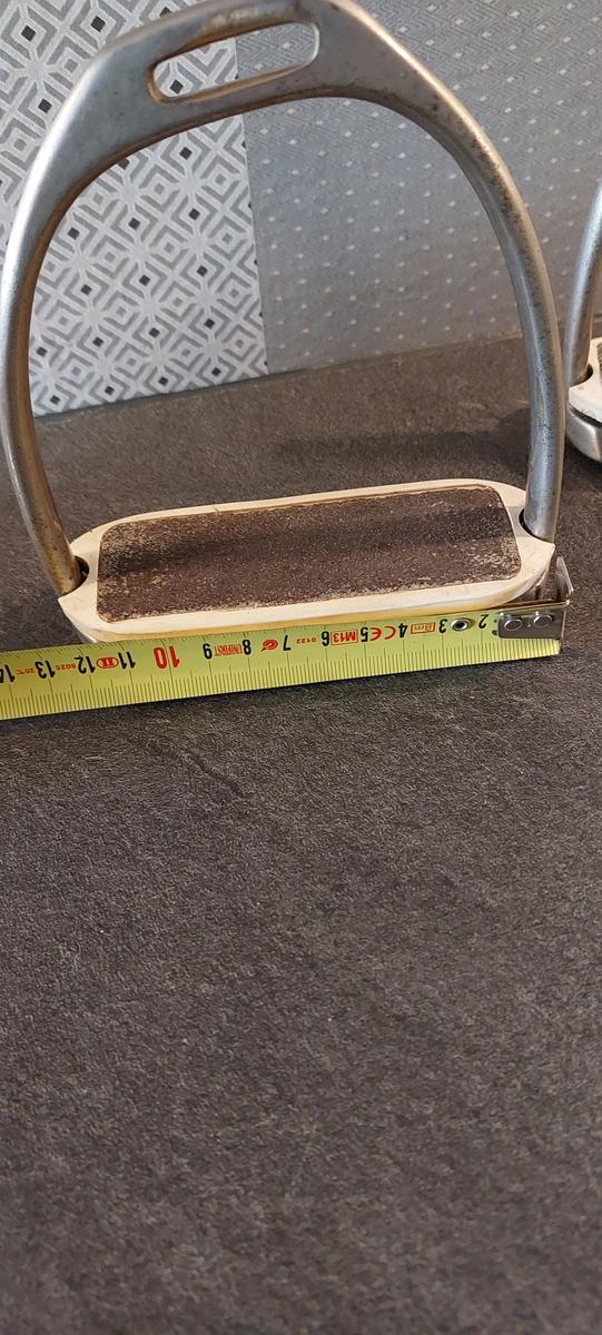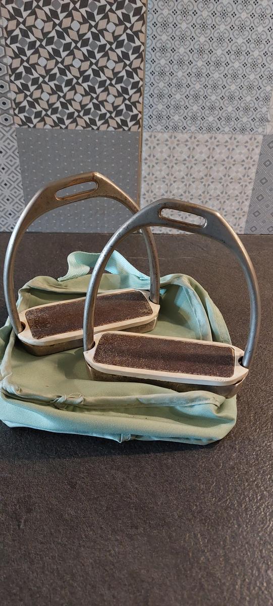 Étriers avec branches extérieures plus courtes et semelles inclinées. Ce qui permet une très bonne mise en place de la jambe et bonne descente des talons