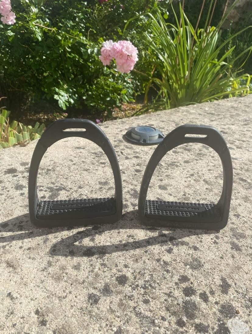 Étriers noir avec les planchers interchangeables noir. Taille adulte (12 cm)