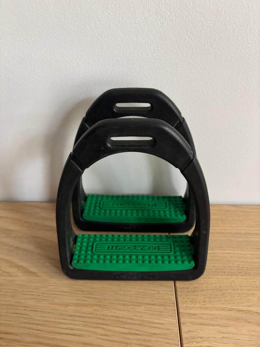 étriers verts et noirs de la marque compositi