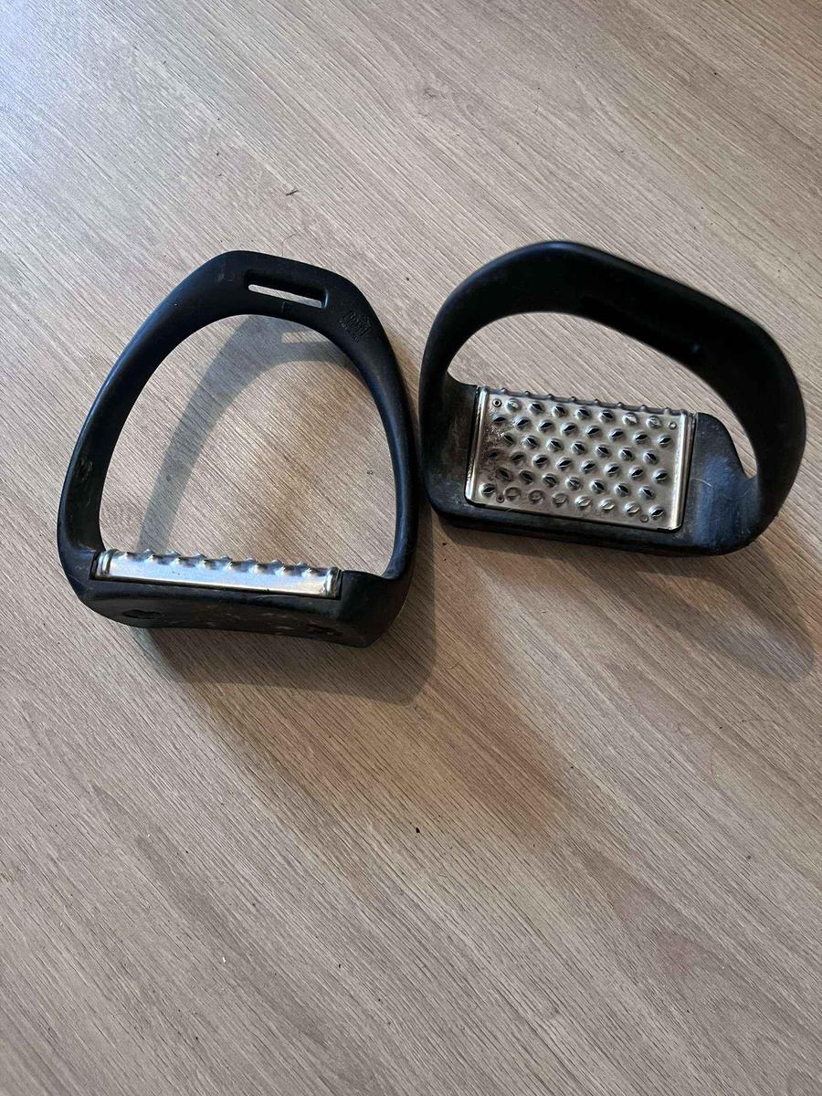 Étriers de sécurité Royal Rider T3, taille adulte, plancher plat grip (picots métalliques), très bon état, seront lavé avant envoi.