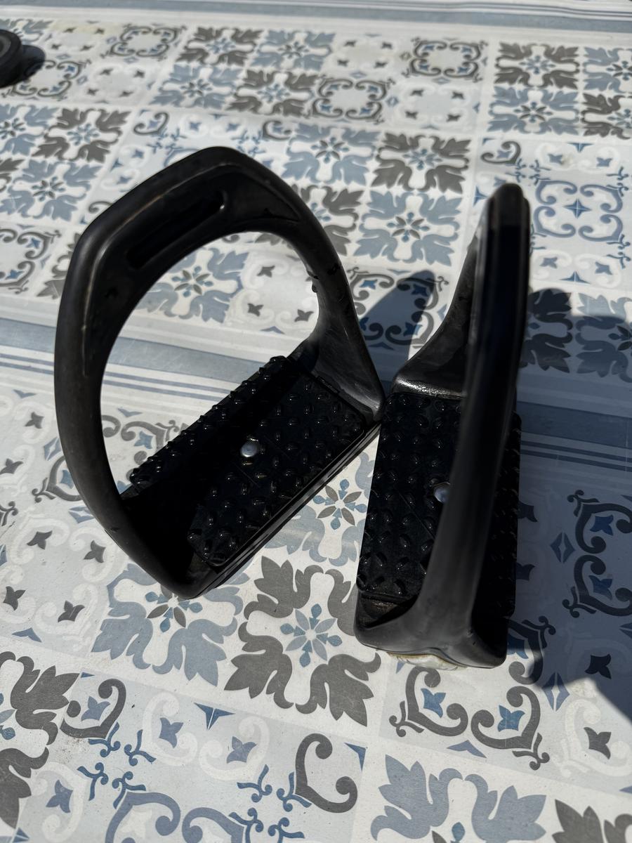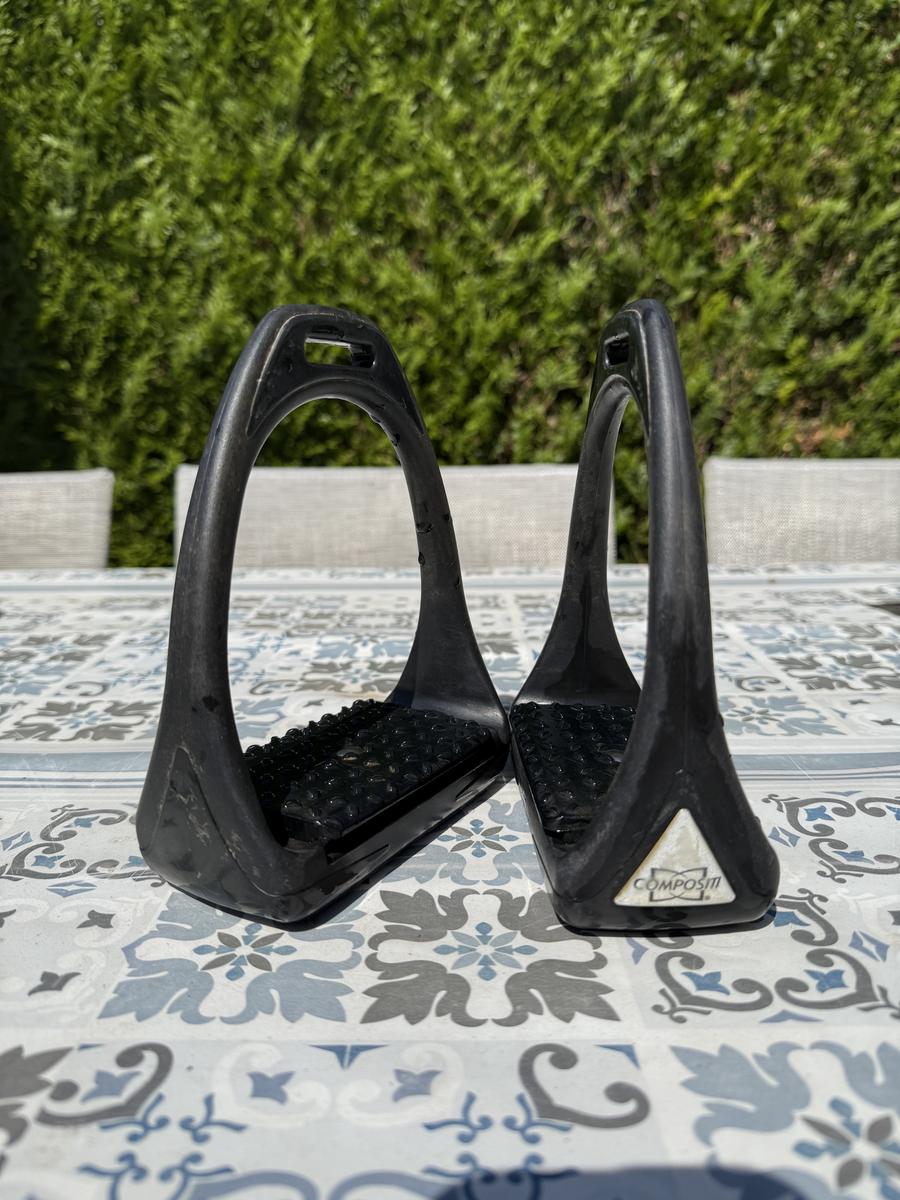 Étrier Compositi, servi mais encore en très bon état, possibilité de les vendre avec une paire d’étrivière en taille 145