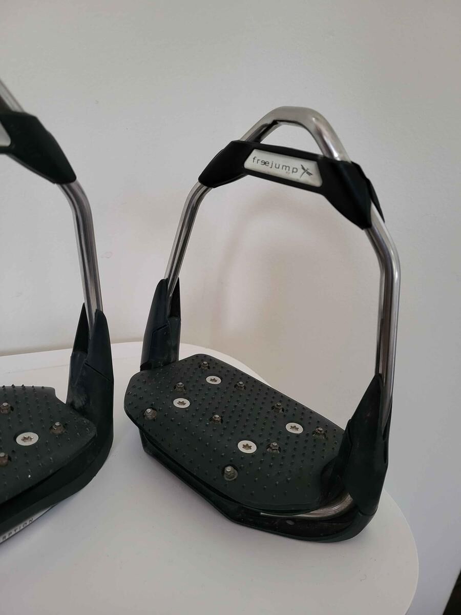 Etriers Freejump Air's , œil orienté et plancher incliné, couleur silver/Black, très bon état