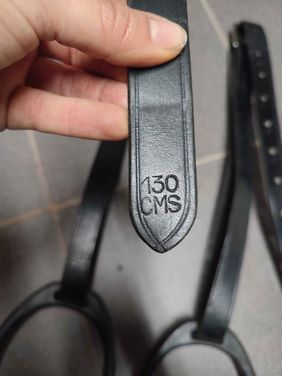 Étrivières cuir taille 130 et étriers composite taille enfant.