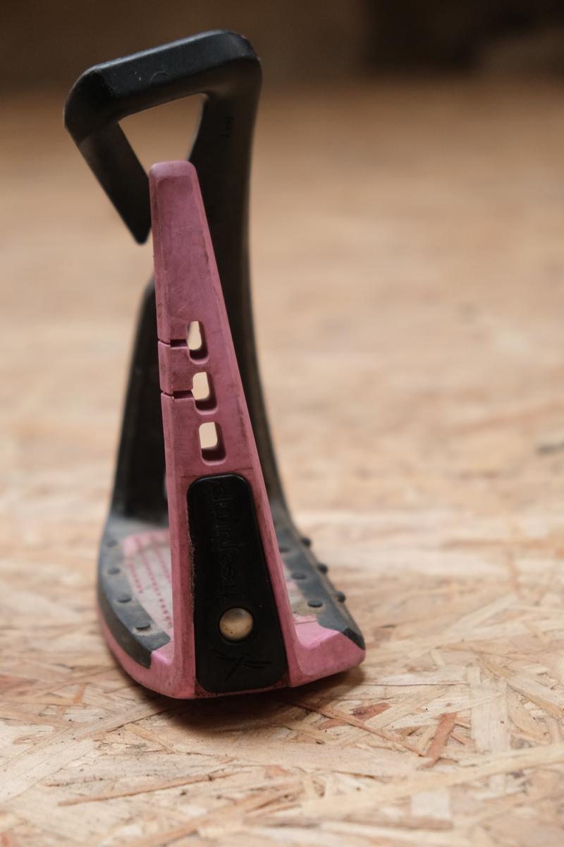 Etriers Freejump rose et noir, taille enfant