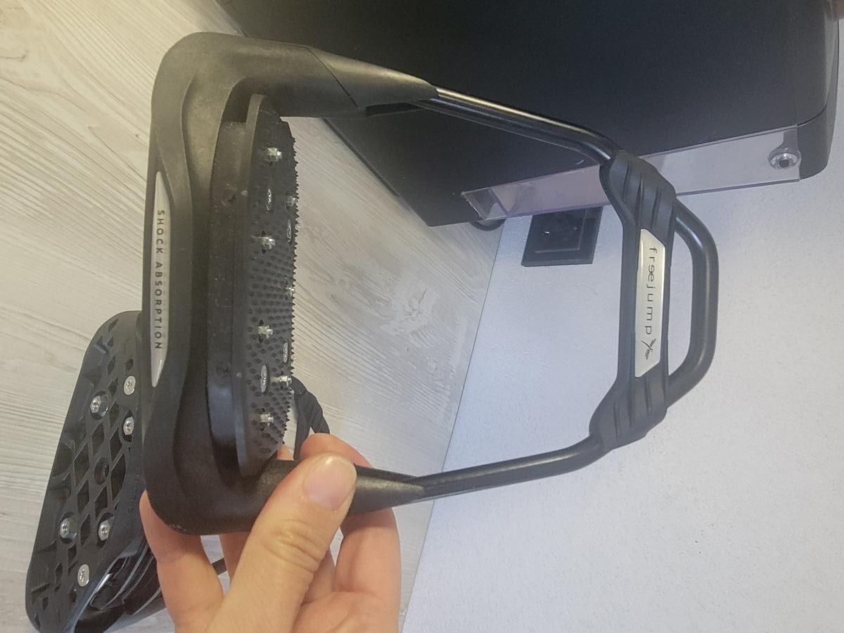 Vends étriers Freejump modèle Air's Full, plancher plat, taille adulte, shock absorption.