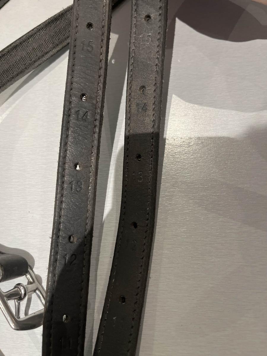 étrivières en cuir noir, peu portés, elles comportent 15 trous et mesurent 125cm