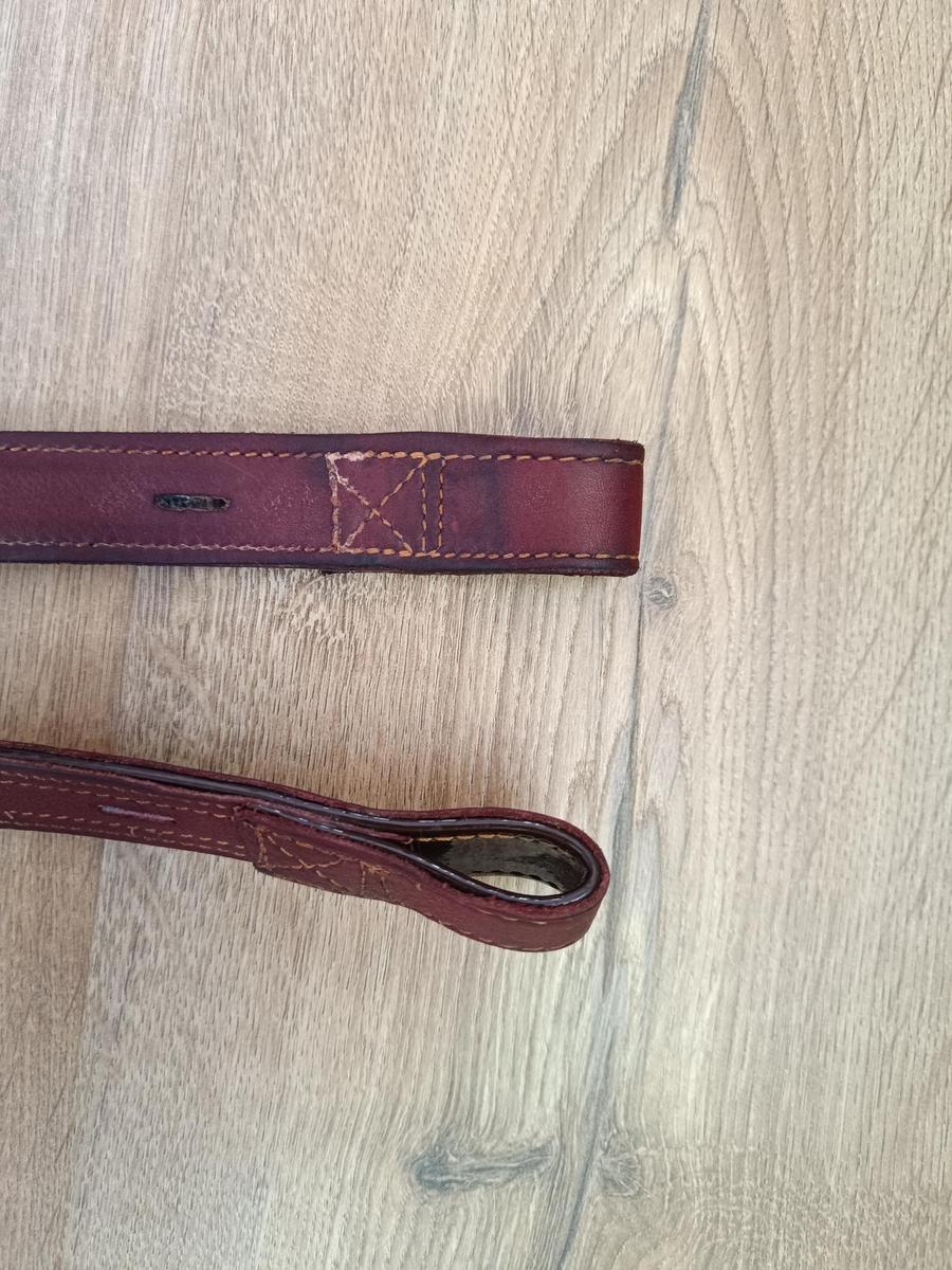 78 cm de la boucle à la partie métallique; 2,5 cm de large, 0,5 cm d'épaisseur.