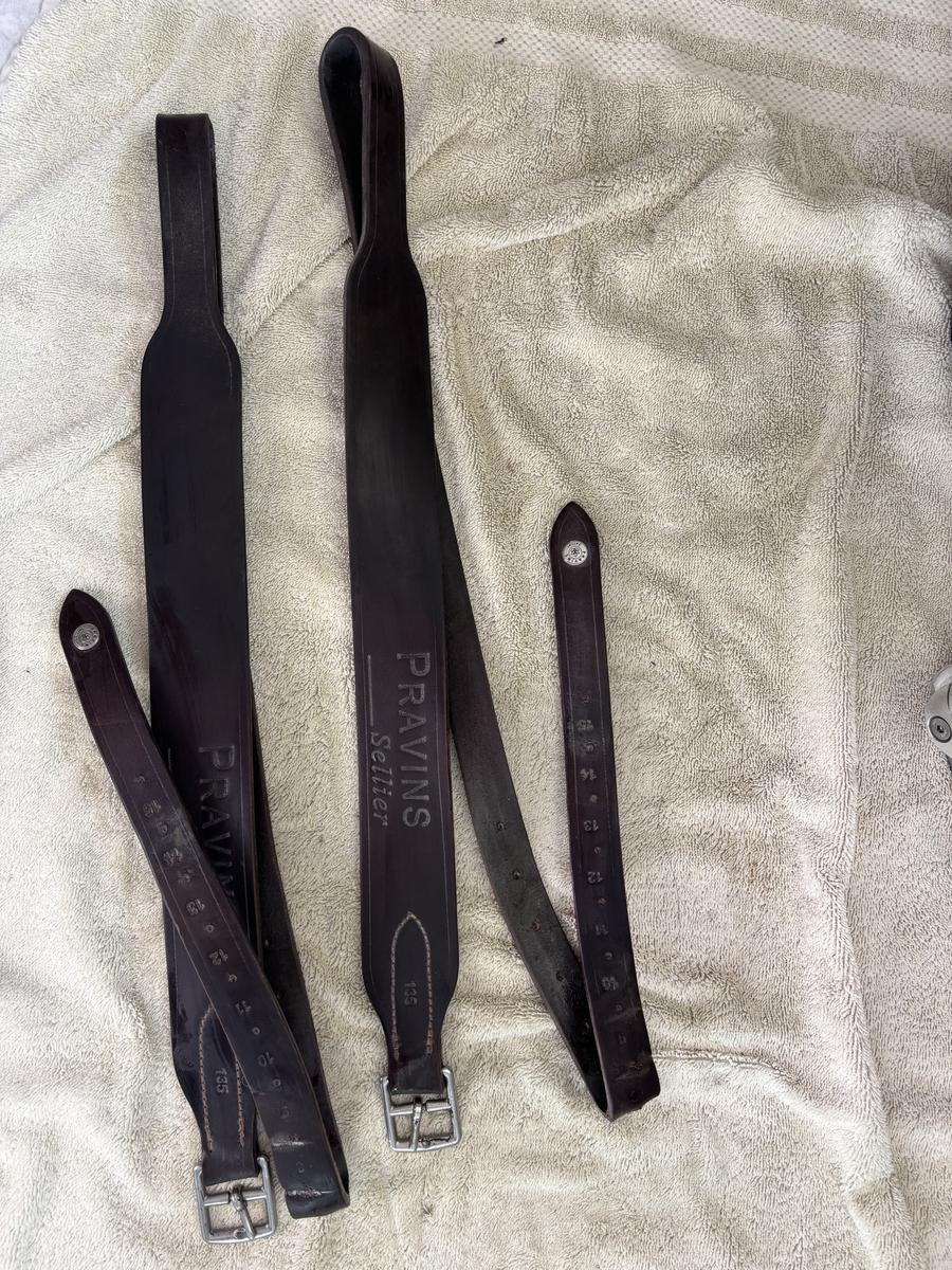 Suite au départ au pré de mon cheval, je suis dans l’obligation de me séparer de tout mon matériel d’équitation. A vendre paire d’étrivières en cuir Pravins large CSO. Achetées neuves il y a moins d’un an. Taille 135 cm.